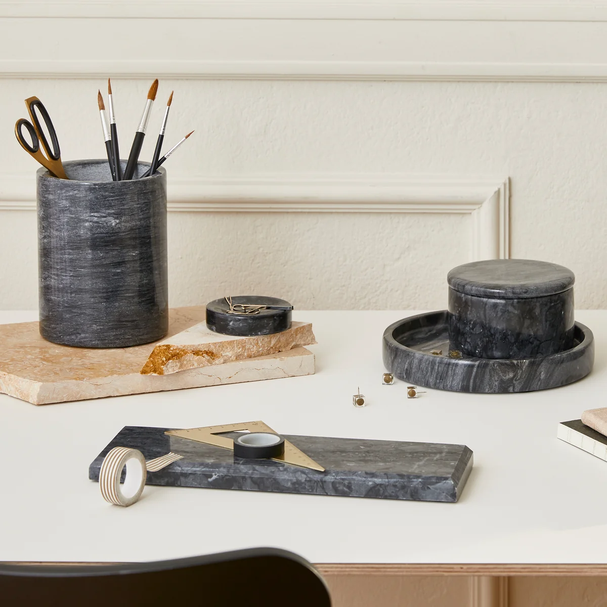 Der Marmor Utensilienbehälter von yunic ist ein extrem vielseitiges Accessoire in der Wohnung: Egal, ob als Stiftehalter im Büro, für das Kochbesteck in der Küche, oder im Atelier für kreative Zwecke - zum Beispiel als Pinselhalter, der Utensilienbehälter ist zeitlos und setzt Akzente.