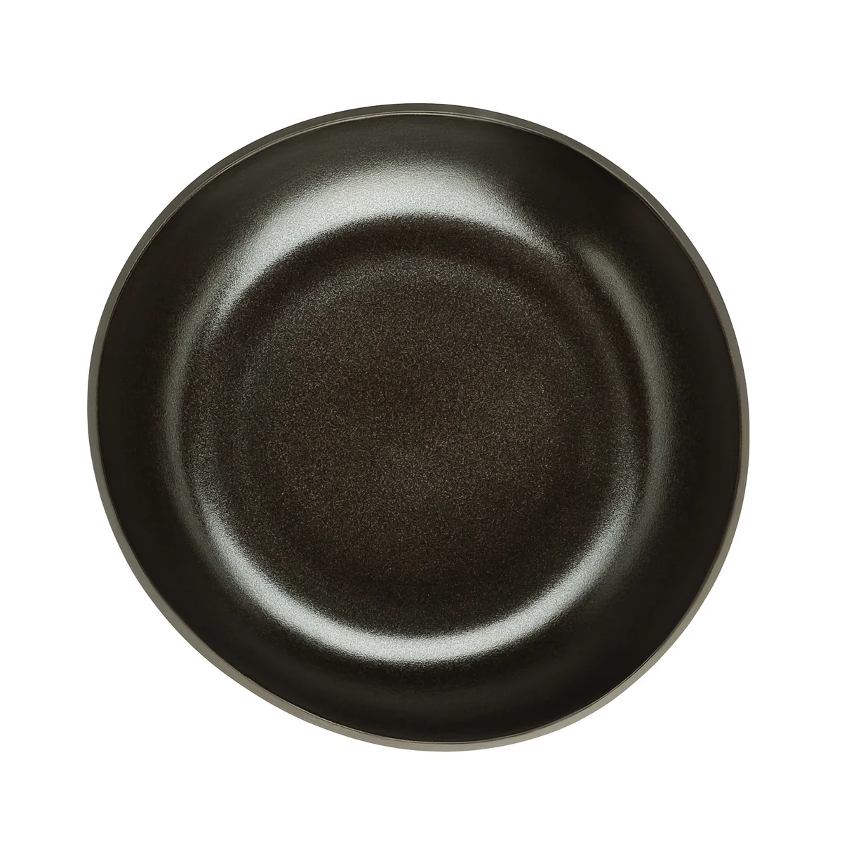 Das Junto Geschirr in Schiefergrau aus Steinzeug umfasst flache und tiefe Teller in verschiedenen Größen, Müslischalen und Kaffeetassen mit Untersetzern.