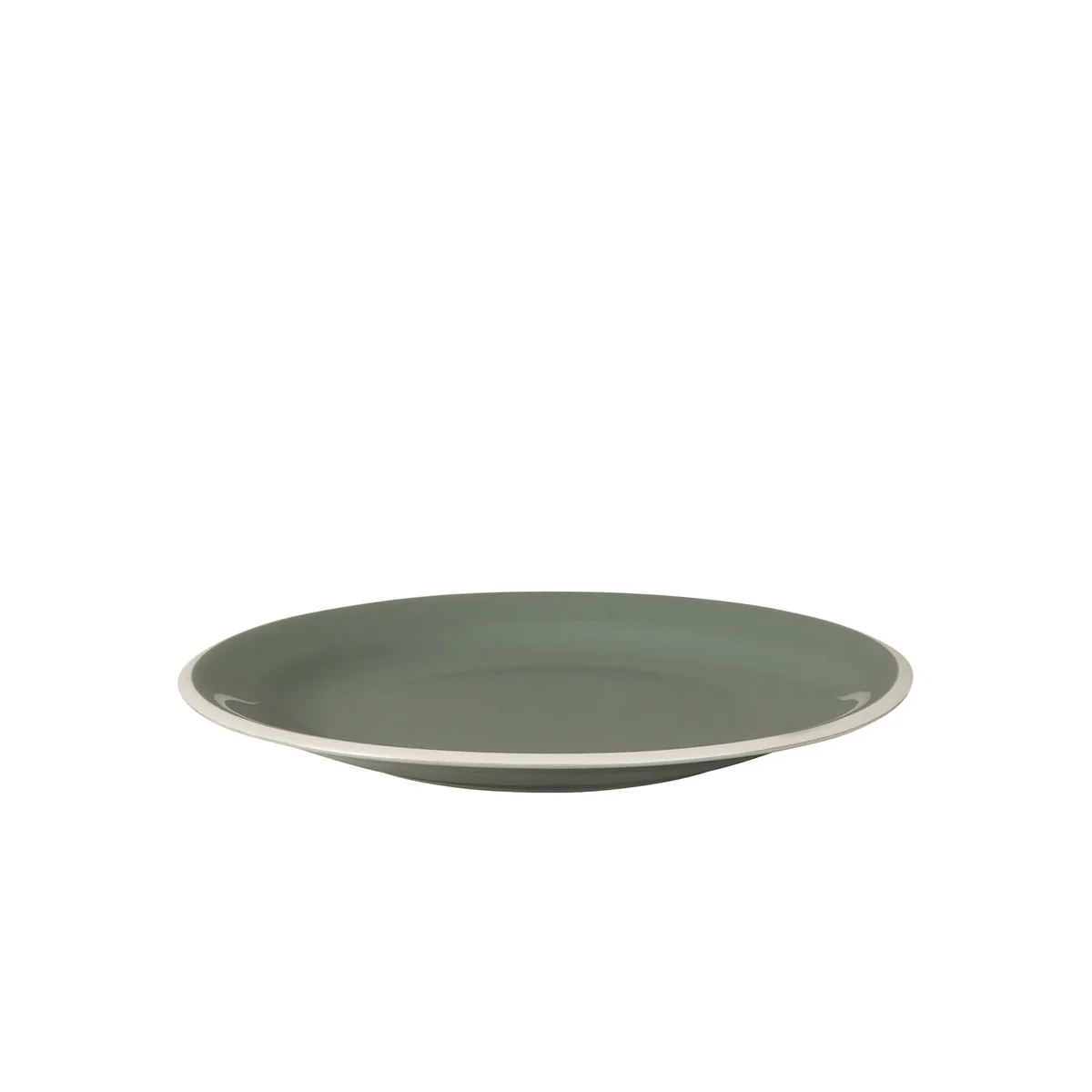 Das sanfte, gedämpfte Grün wird von einem zarten beigen Kontrastrand dekorativ abgerundet und strahlt durch und durch entspannte Eleganz aus. Jedes Stück besteht aus handgefertigtem glasiertem Steingut, das in Portugal hergestellt wird und überzeugt durch seine sorgfältige handwerkliche Verarbeitung und seinen zeitlosen Charme.