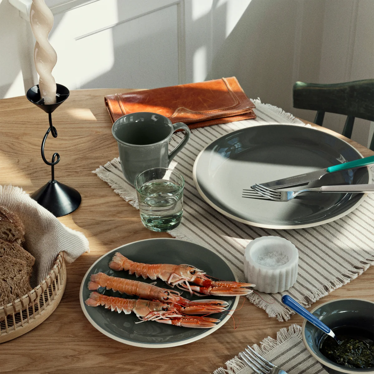 Inspiriert von entspannten Tischrunden am Mittelmeer setzen die charakteristischen geschwungenen Kanten des Geschirrs die persönlichen kulinarischen Kreationen perfekt in Szene.