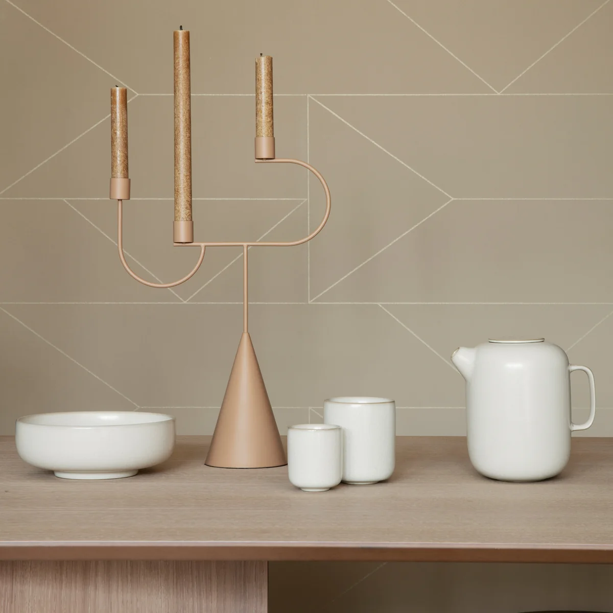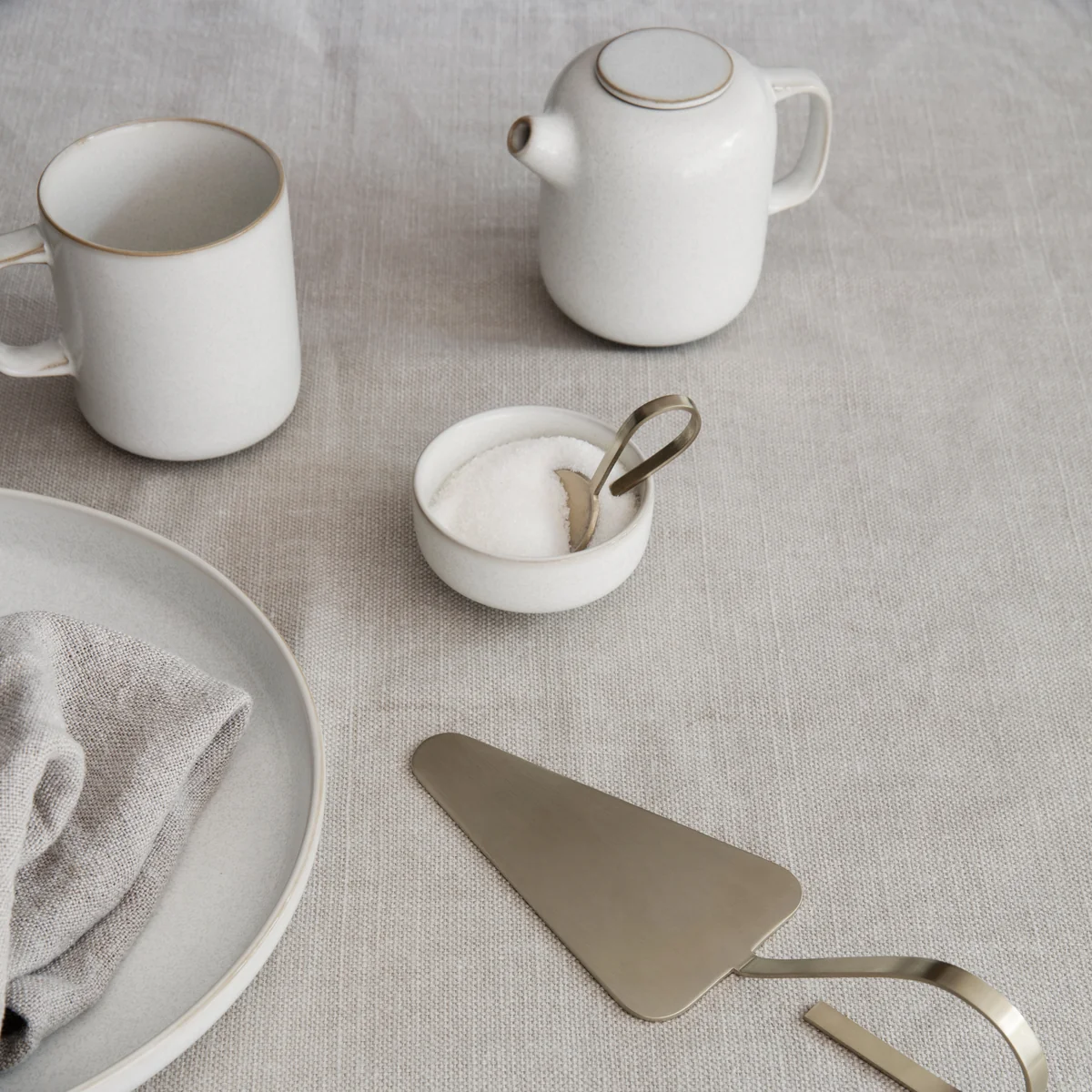 Zu der Serie aus Keramik gehören Teller, Schalen, Becher und Kannen, die sich dank des schlichten Designs gut in jede Küche einfügen und auf jedem Esstisch dekorativ machen.
