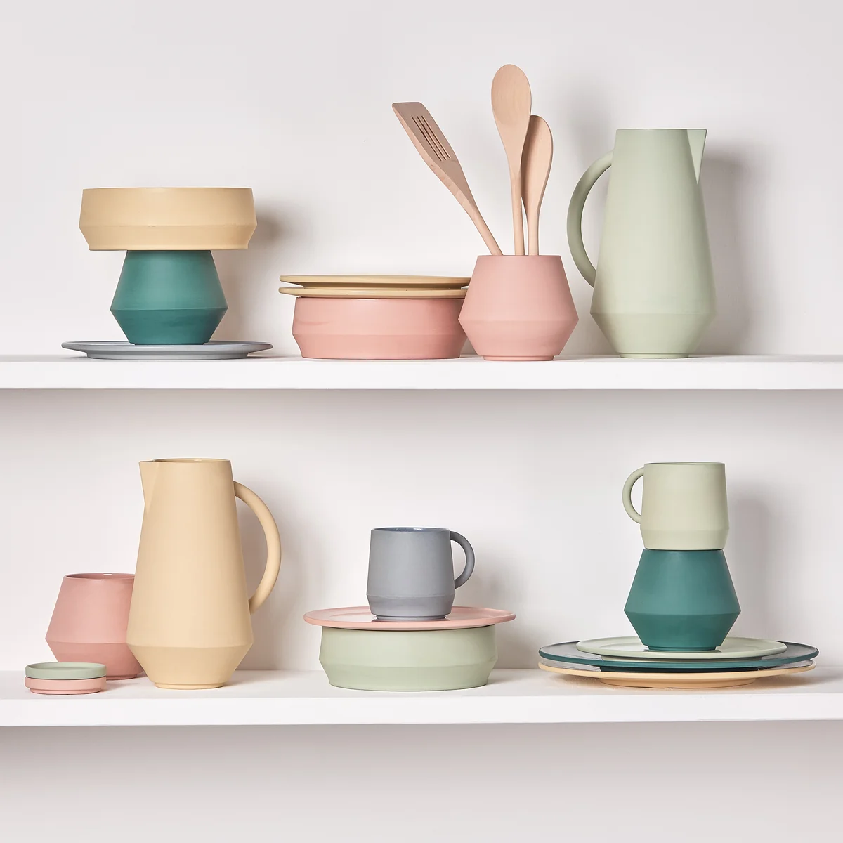 Mit was kann man denn heute eigentlich noch überraschen? Mit dem pastellfarbenen Unison Geschirr-Set von Schneid bestimmt. Damit steigt man in eine Welt der leuchtenden Farben, die aber niemals aufdringlich - nein eher beruhigend und verspielt wirken. Die Teller gibt es in verschiedenen Größen und Farben und lassen sich durch die Einkerbungen auch als Untertasse verwenden.