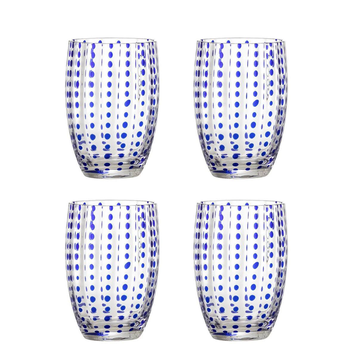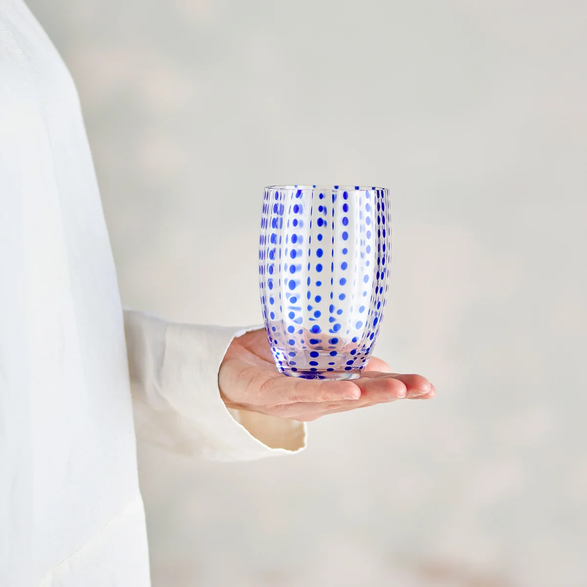 - Hergestellt aus mundgeblasenem Glas mit blauen Punktlinien