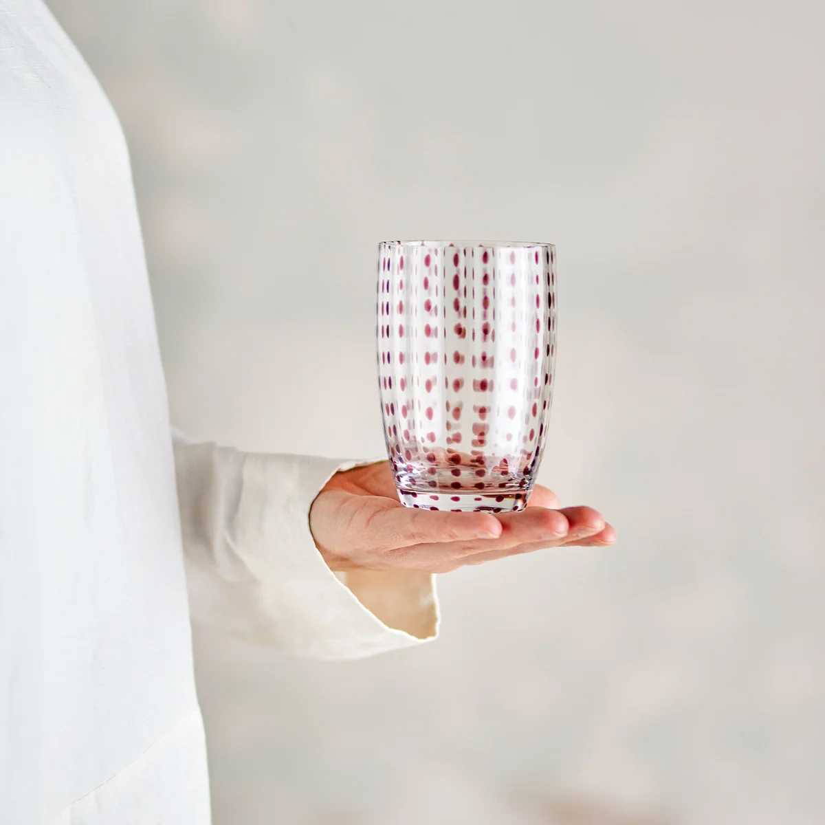 Das Brinley Trinkglas von Bloomingville vereint nordisches Design mit traditioneller Handwerkskunst. Jedes Glas wird aus mundgeblasenem Glas gefertigt und zeigt feine, gepunktete Linien in harmonischen Farbtönen. Durch die Handarbeit entstehen kleine Unregelmäßigkeiten, die jedes Stück zu einem echten Unikat machen. Perfekt geeignet für Wasser, Säfte oder stilvolle Cocktails – die Gläser bringen Farbe und Charakter auf jeden Tisch.