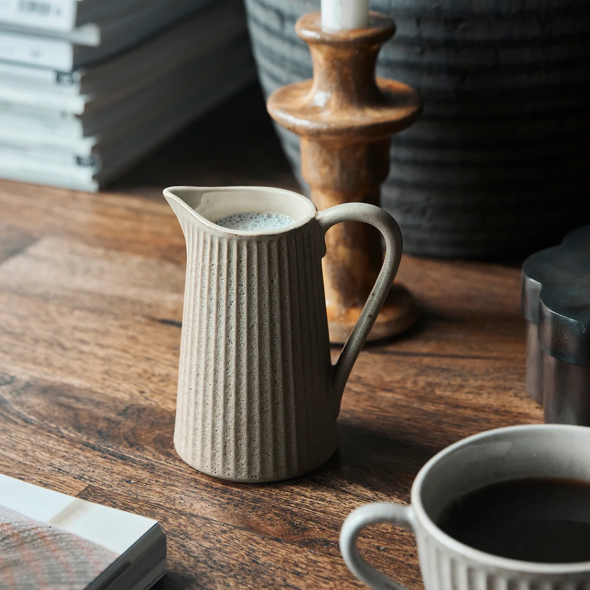 Die House Doctor Pleat Kanne ist die perfekte Wahl für den täglichen Gebrauch sowie für besondere Anlässe. Mit ihrem geriffelten Look vereint sie zeitlose Eleganz mit lässiger Raffinesse. Die matte Außenseite verleiht der Kanne eine dezente und moderne Note, während die glänzende Innenseite einen Hauch von Luxus verströmt. Diese Kanne ist ein vielseitiges Accessoire, das jedem Tisch eine elegante Atmosphäre verleiht, besonders zwischen schlichtem Alltagsgeschirr. Doch ihre Verwendungsmöglichkeiten enden hier nicht - neben der Funktion als Getränkekanne kann sie auch als stilvolle Vase für frische Blumen aus dem Garten dienen, um Ihrem Raum eine zusätzliche Note von Natur und Schönheit zu verleihen.