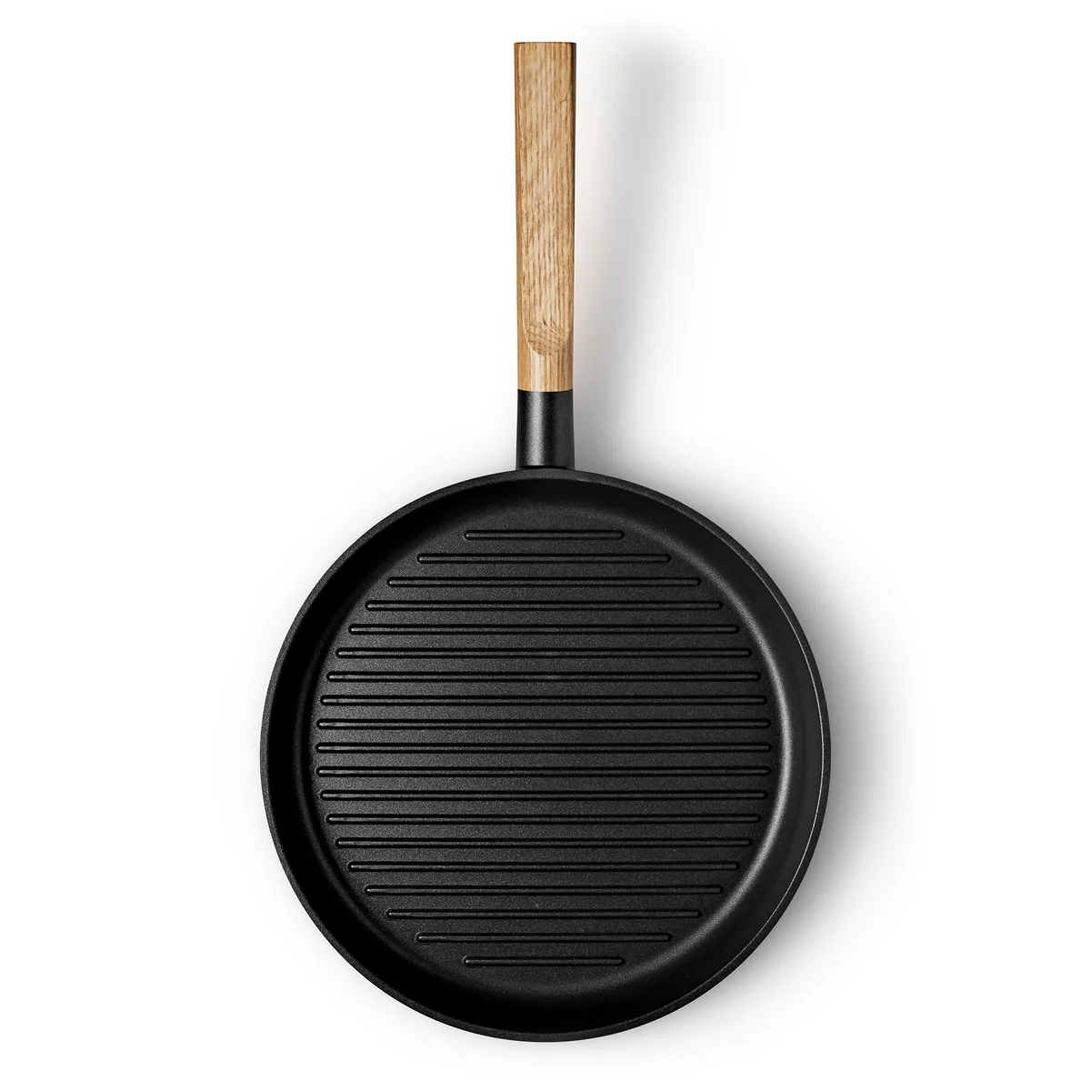 Die Nordic Kitchen Grillpfanne von Eva Solo gehört zu der gleichnamigen Serie, die mit einer rustikalen Optik und optimalen Hitzeverteilung begeistert. Mit den typischen Rillen eignet sich die Pfanne ideal zum Angrillen von Steak und anderem Fleisch. Aber selbstverständlich können auch Gemüse wie Auberginen, Zucchini und andere Leckereien in der Grillpfanne zubereitet werden. Aus Aluminium gefertigt und mit einer Antihaftbeschichtung versehen, ist die Pfanne nicht nur angenehm leicht, sondern auch einfach zu reinigen.