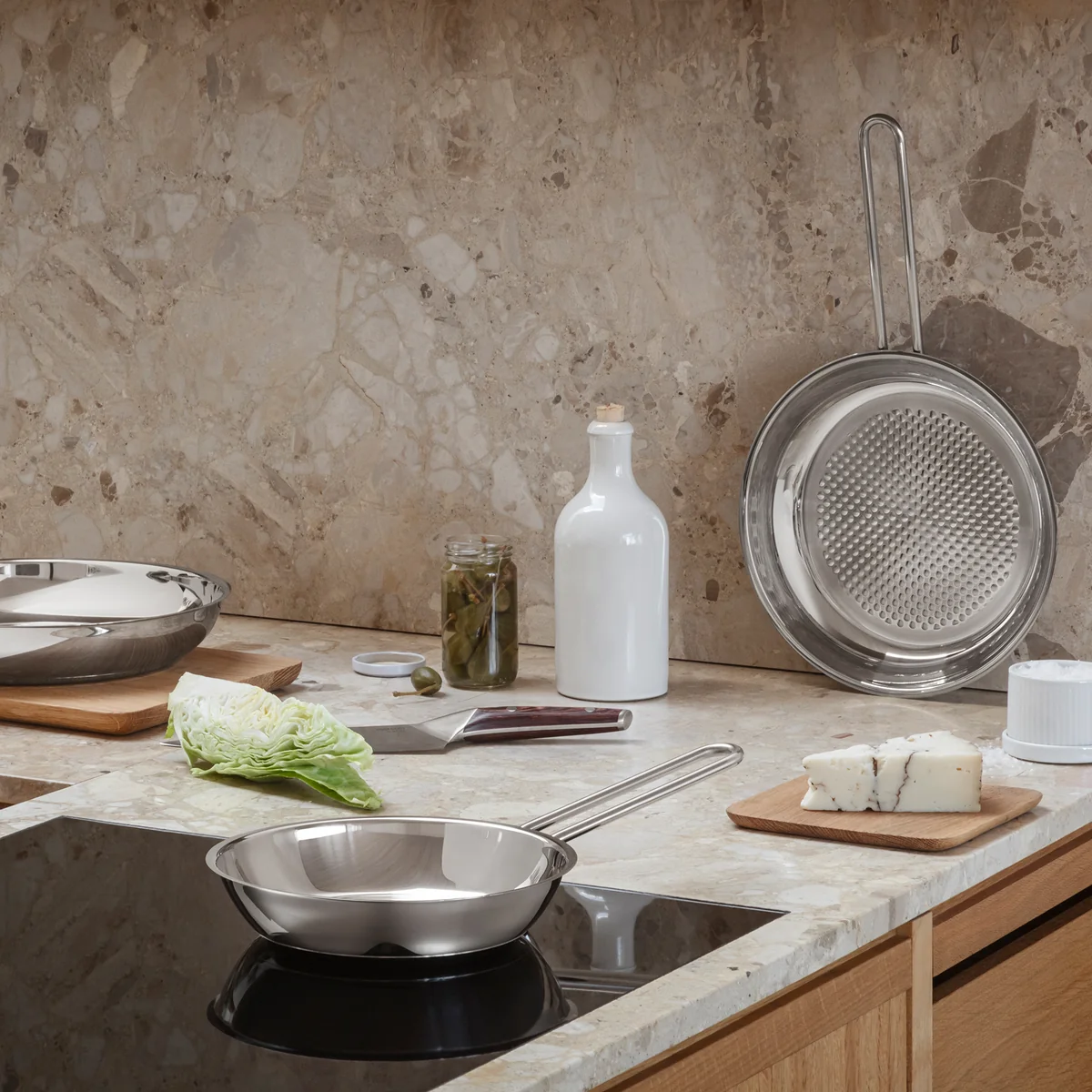 Bratpfanne aus Edelstahl mit Wabenstruktur