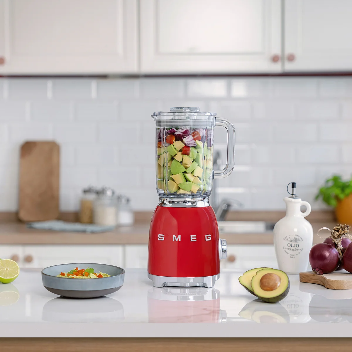 Der Standmixer BLF03 von von Studio deepdesign® für Smeg bietet eine Vielzahl von praktischen Funktionen. Smoothies, Cocktails und Slush-Eis können ganz simpel zubereitet werden. Die neuste Version des kultigen Mixers, in 50er Jahre Design, macht ihn mit seiner verbesserten Technologie vielseitig und effizient. Die Karaffe und die vollständig aus Edelstahl gefertigte Messereinheit ermöglichen, dass Obst und Gemüse ideal gemischt werden. Die Klingeneinheit aus Edelstahl ermöglicht, dass auch kleine Mengen von Lebensmitteln hervorragend zerkleinert werden können.