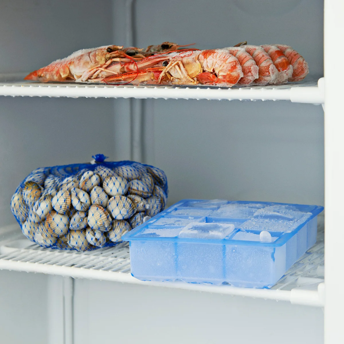 Die Eiswürfelbereiter aus der HAY Kitchen Market Serie fassen 12 Eiswürfel in einem einfachen und kompakten Würfeldesign oder 8 in runder Form. So ist der Cocktailabend perfekt und der Weißwein kann optimal gekühlt werden. Der Eiswürfelbereiter wird aus flexiblem und strapazierfähigem Silikon hergestellt, wodurch sich die Eiswürfel leicht lösen lassen.