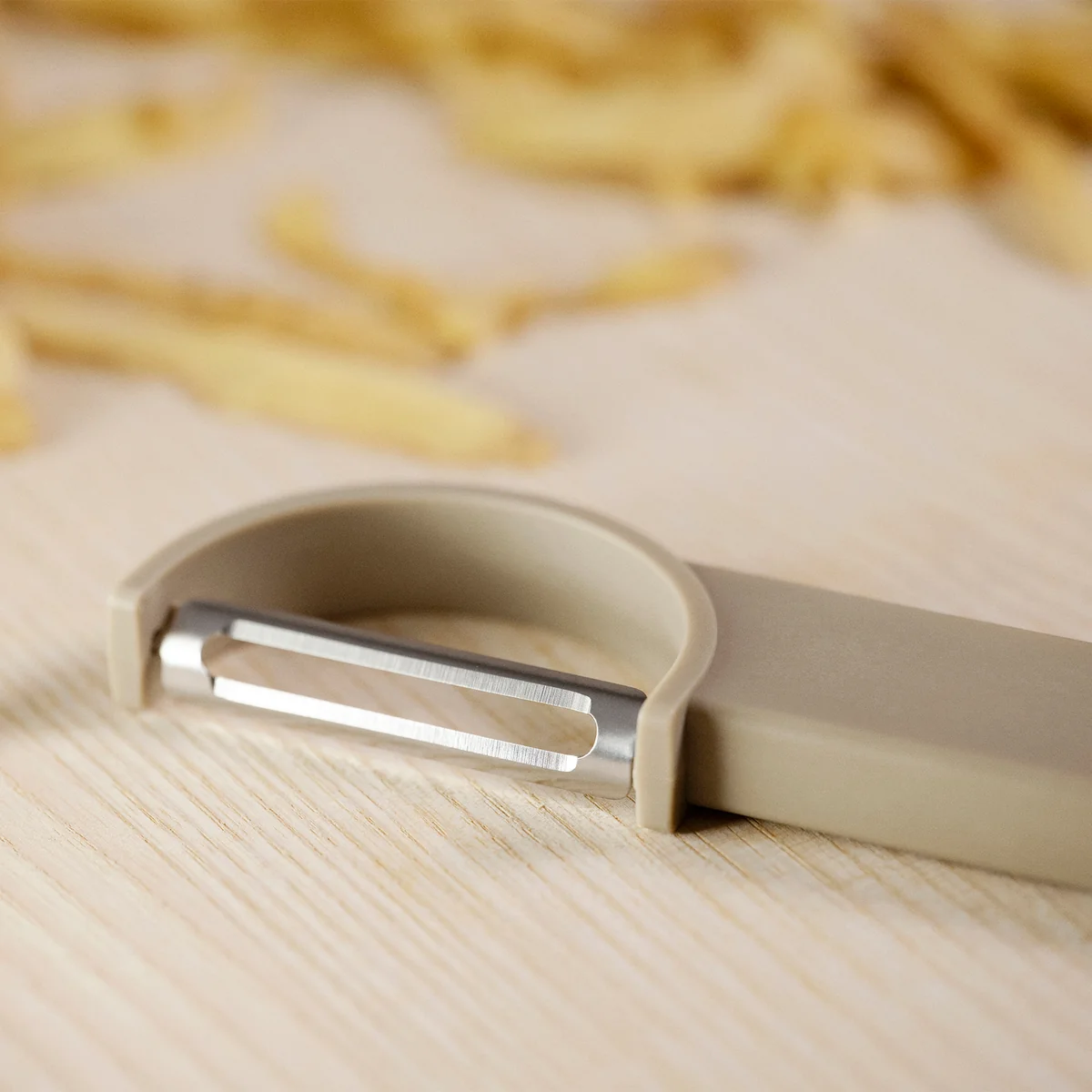 Die Konzentration liegt auf Effizienz, sobald Sie diesen Gemüseschäler von Zone Denmark aus der Küchenschublade ziehen. Dieses kleine Werkzeug wird zu einem unschätzbar wertvollen Helfer, wenn Sie schnell etwas schälen müssen - ganz gleich, welche Hand oder Richtung Sie verwenden, sei es zum Körper hin oder vom Körper weg. Die Klinge besteht aus hochwertigem, messerscharfem Stahl, während der Griff angenehm in der Hand liegt.
