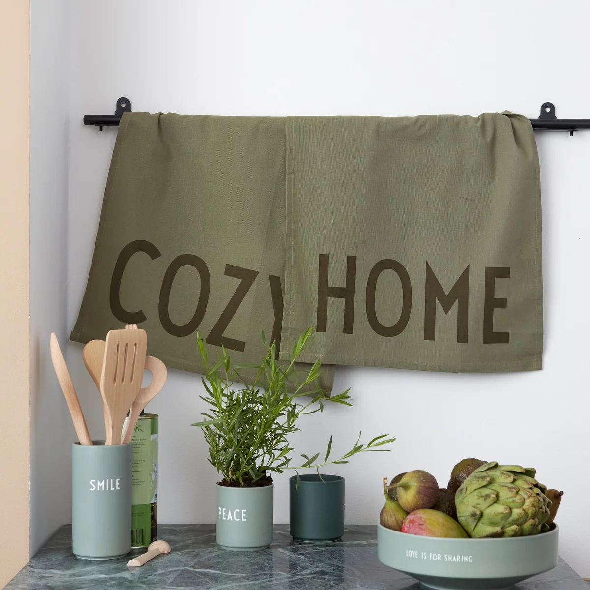 Mit den beschrifteten Geschirrtüchern von Design Letters wird Geschirrspülen zu einer stilvollen Angelegenheit. Die gedeckten Pastellfarben und die klassische Schriftart von Arne Jacobsen aus 1937 lassen die Geschirrtücher auch bei Nicht-Benutzung zu einem tollen Küchenaccessoire werden. Die Geschirrtücher bestehen zu 100 % aus Baumwolle und sind saugstark. So lassen sich Teller, Tassen und anderes Geschirr wunderbar abtrocknen. Die Tücher können bei 60 Grad gewaschen werden.