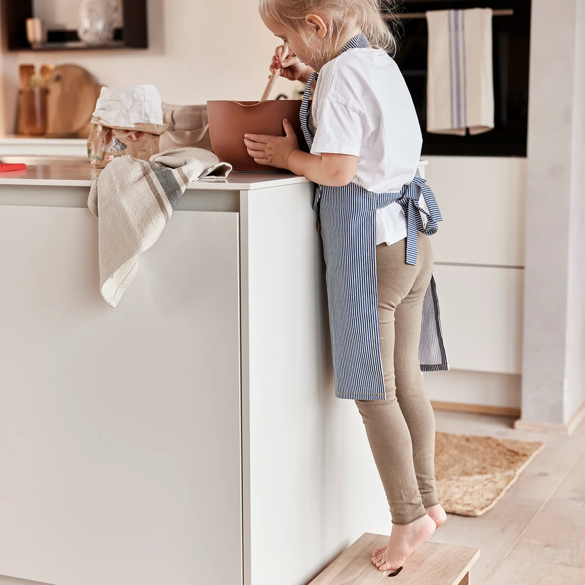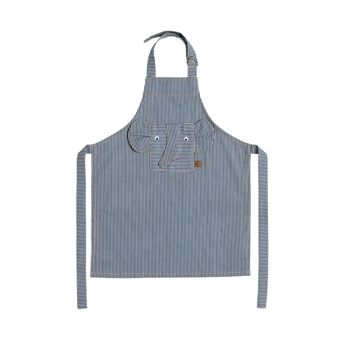 Die Striped Denim Elephant Schürze aus dem Hause OYOY Mini. Das Kochen spielt eine bedeutende Rolle im Alltag, daher sollte es auch Spaß machen – und das mit Schürzen für die ganze Familie. Diese Schürze ist ideal für alle, die gerne gemeinsam Zeit in der Küche verbringen. Die gestreifte Jeansschürze vereint auf elegante Weise Form und Funktion.