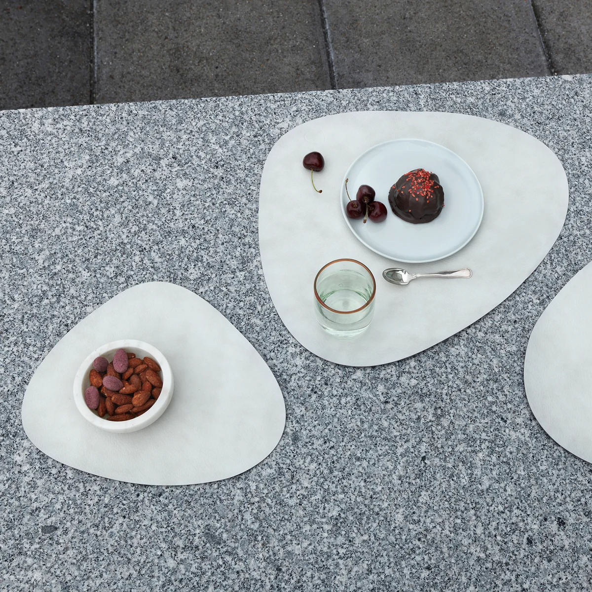 Die Tischsets Curve S von Lind DNA sind in unterschiedlichen Lederoberflächen und Farben erhältlich.