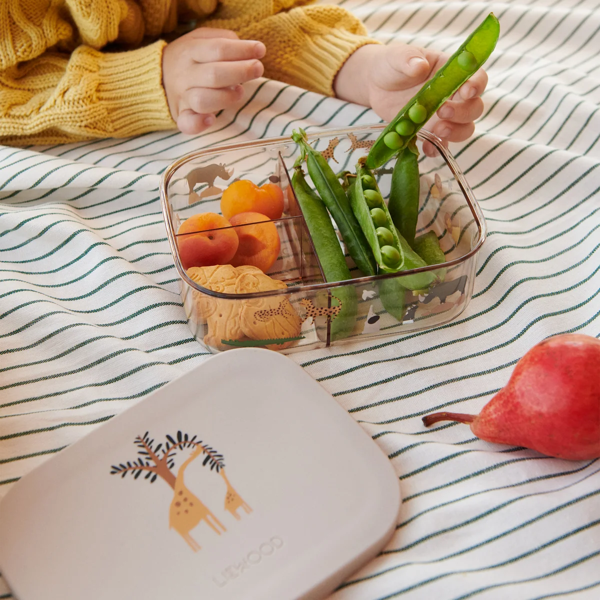 Die Arthur Tritan Lunchbox von LIEWOOD kombiniert kindgerechtes Design mit hoher Alltagstauglichkeit. Gefertigt aus Tritan, einem besonders schlagfesten und bruchsicheren Material, wirkt sie fast wie Glas, ist jedoch deutlich leichter und langlebiger. Der weiche Silikondeckel lässt sich mühelos öffnen und schließen – ideal für kleine Hände.