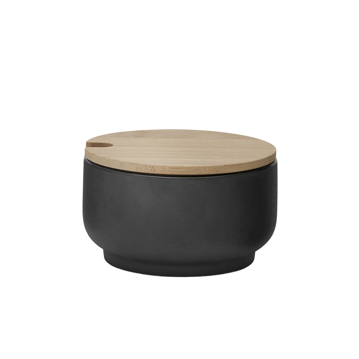 Als Teil der preisgekrönten Theo Serie von Stelton ist die gleichnamige Zuckerschale die perfekte Ergänzung zu dem Tee- und Kaffeegeschirr. Die Steinzeugschale wird mit einem Deckel aus Bambusholz kombiniert, sodass der Inhalt einfach abgedeckt werden kann.