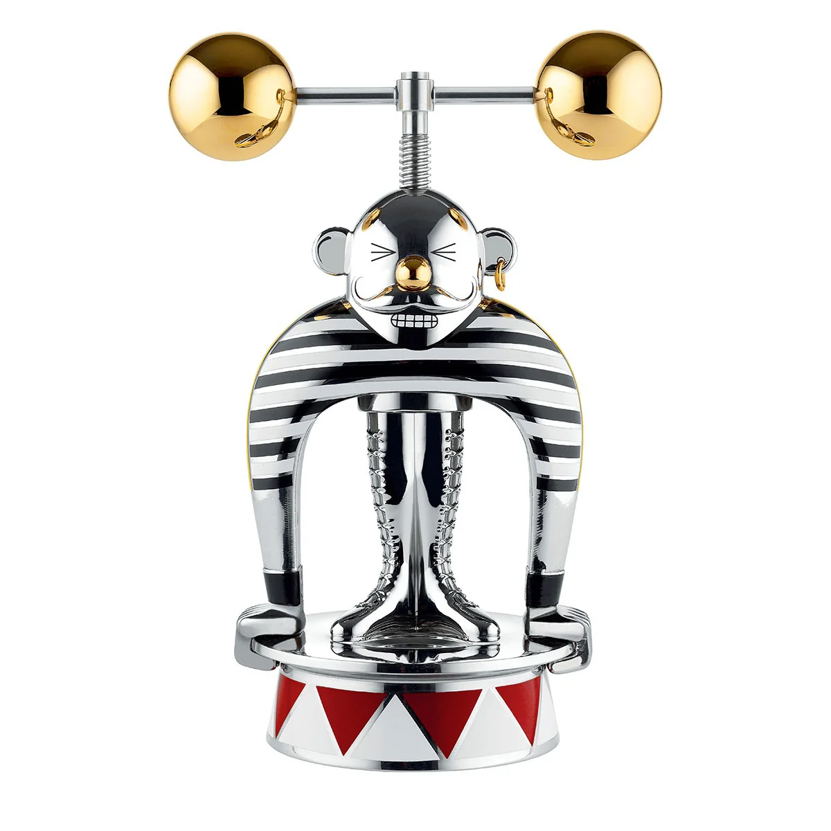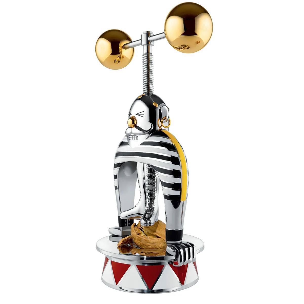 Der The Strongman Nussknacker gehört zu der Limited Edition aus der Circus Kollektion von Alessi. Er wurde von Marcel Wanders entworfen und ist ein Nussknacker in Form eines Muskelprotzes. Die Nuss wird auf den Zirkus Podest gelegt und dann im Schraubverfahren von den Füßen des Muskelmannes zerdrückt. Seine Hände stützen sich an der Plattform ab und sein Gesicht ist vor Anstrengung verzerrt, denn zwei Gewichte liegen auf seinem Kopf, die durch einfaches Drehen die Nuss zerdrücken.