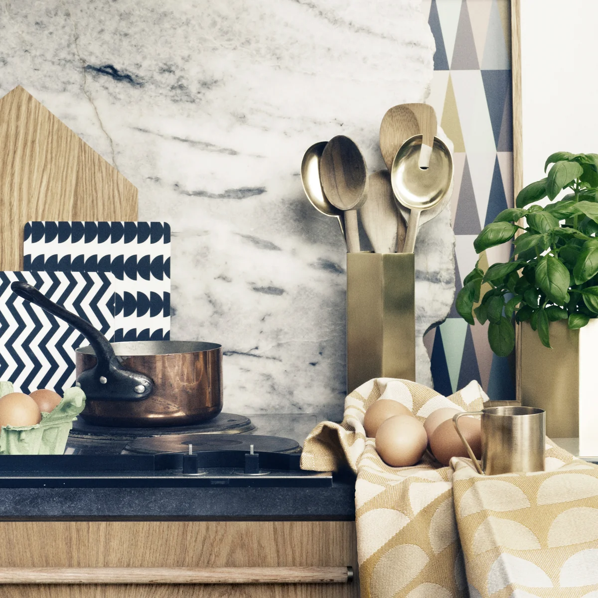 Der Grund: Ferm Living fertigt die Salatgabel und den Salatlöffel in edlem Messing-Look.