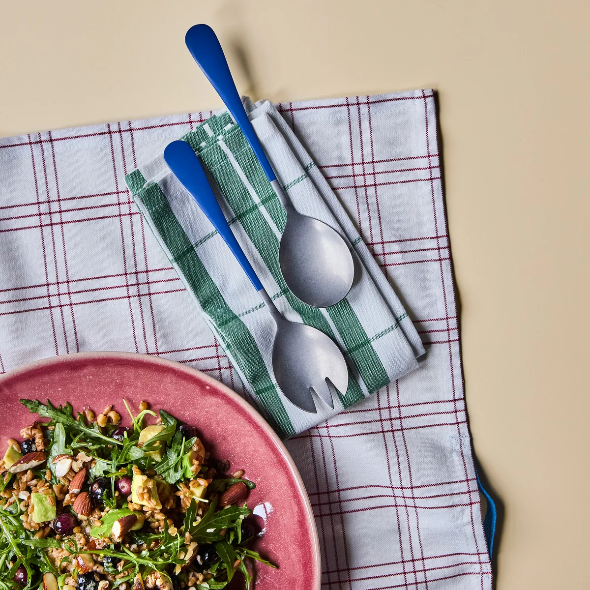 Das Serv Salatbesteck von Nicolas Vahé verleiht jeder Tafel eine besondere Note. Gefertigt aus hochwertigem Edelstahl in Antikoptik, vereint es rustikale Eleganz mit einem modernen Farbakzent durch die blauen Griffe. Ob beim entspannten Brunch, beim Servieren knackiger Sommersalate oder als dekoratives Detail auf Ihrer Festtafel – dieses zweiteilige Set macht jede Mahlzeit zu einem stilvollen Genussmoment. Für die optimale Pflege wird Handwäsche empfohlen, um die Farbintensität zu erhalten.