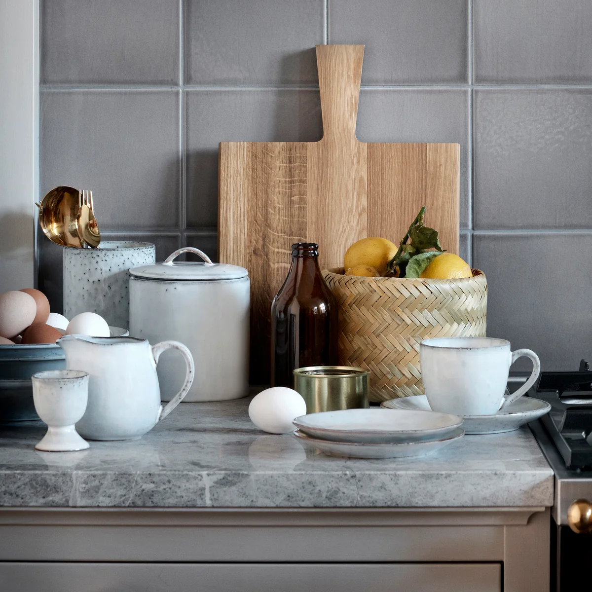 Die unregelmäßige Glasur erinnert an den Sand, der über den Strand fegt und die windgepeitschten Wellen des nordischen Meeres. So schafft man eine skandinavische Note auf dem Esstisch und erzeugt echtes Urlaubsfeeling.