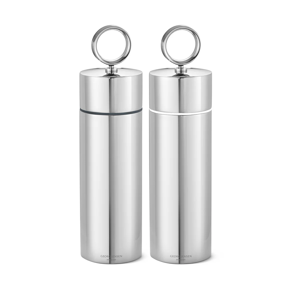 Mit dem Bernadotte Salz- und Pfeffermühlen Set lassen sich Gerichte stilvoll verfeinern. Das Set besteht aus hochglanzpoliertem Edelstahl und ist besonders schlicht gestaltet, sodass es sich in klassische und moderne Ambiente gleichermaßen einfügt. Damit passt es perfekt in die Bernadotte Serie, die bereits 1930 von Sigvard Bernadotte entworfen wurde.