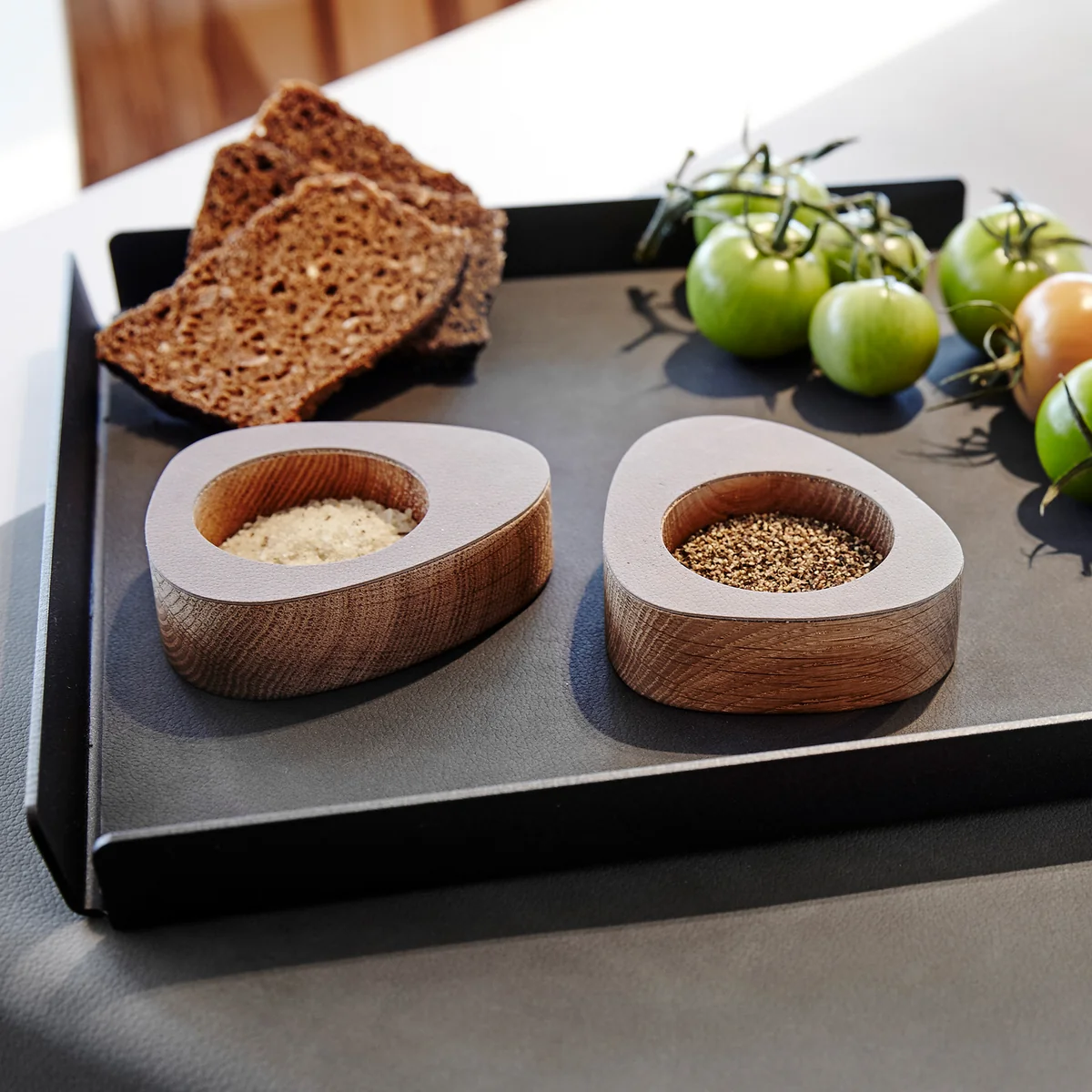 Die Salt & Pepper Aufbewahrung von Lind DNA ist eine dekorative Lösung für die Aufbewahrung von Salz und Pfeffer. In der Küche oder auf dem Esstisch aufgestellt fügt sich die Aufbewahrung dekorativ in jedes Ambiente ein und ist förmlich von den Curve Tischsets inspiriert.