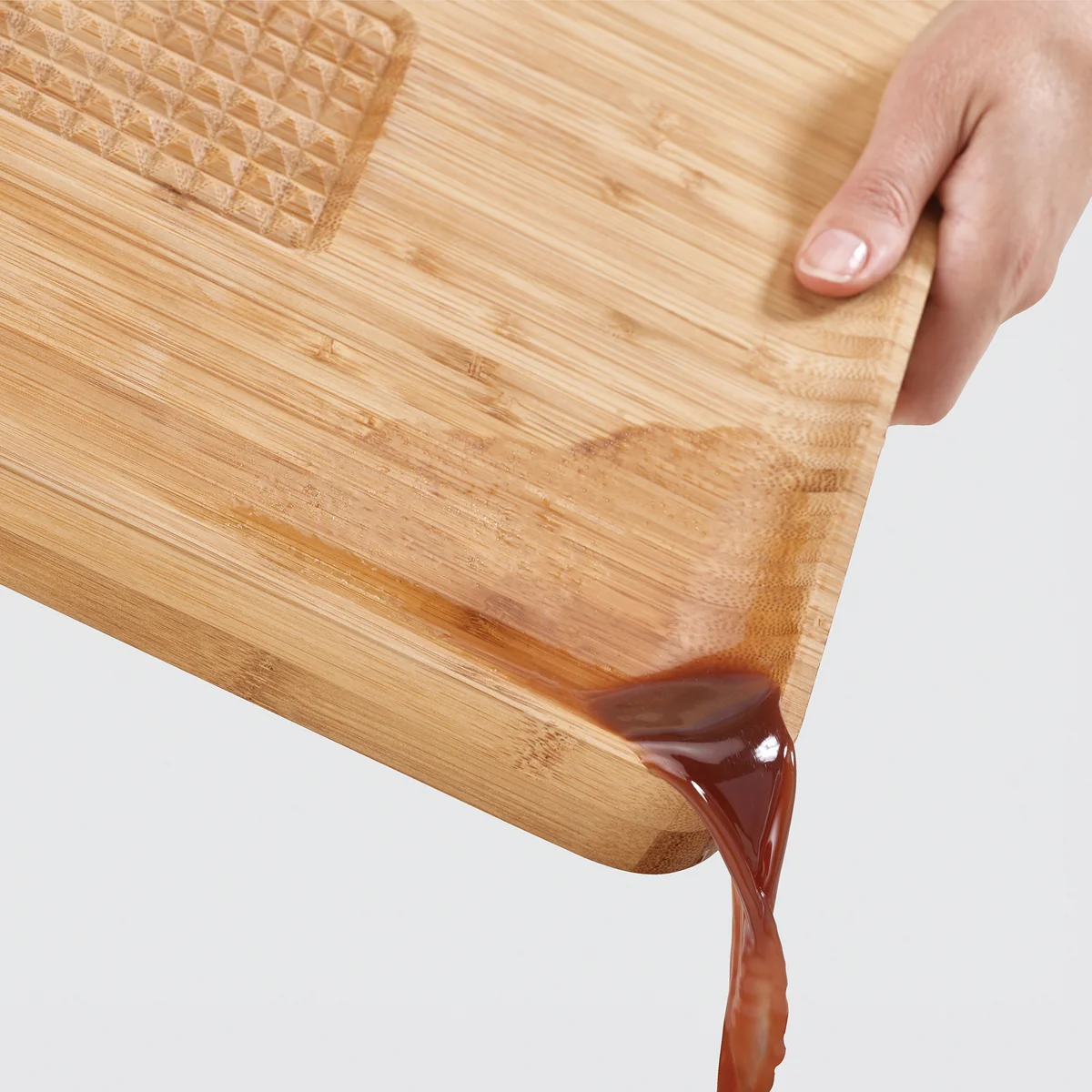 Das Cut & Carve Bamboo von Joseph Joseph ist ein schweres und robustes Schneidebrett aus Bambus, welches sich optimal zum Vorbereiten und Verarbeiten von Fleisch, Brot und Gemüse eignet. Für ein sicheres Schneiden sorgt dabei das Areal in der Mitte des Brettes, welches zur Fixierung der Lebensmittel dient und verhindert, dass diese verrutschen.