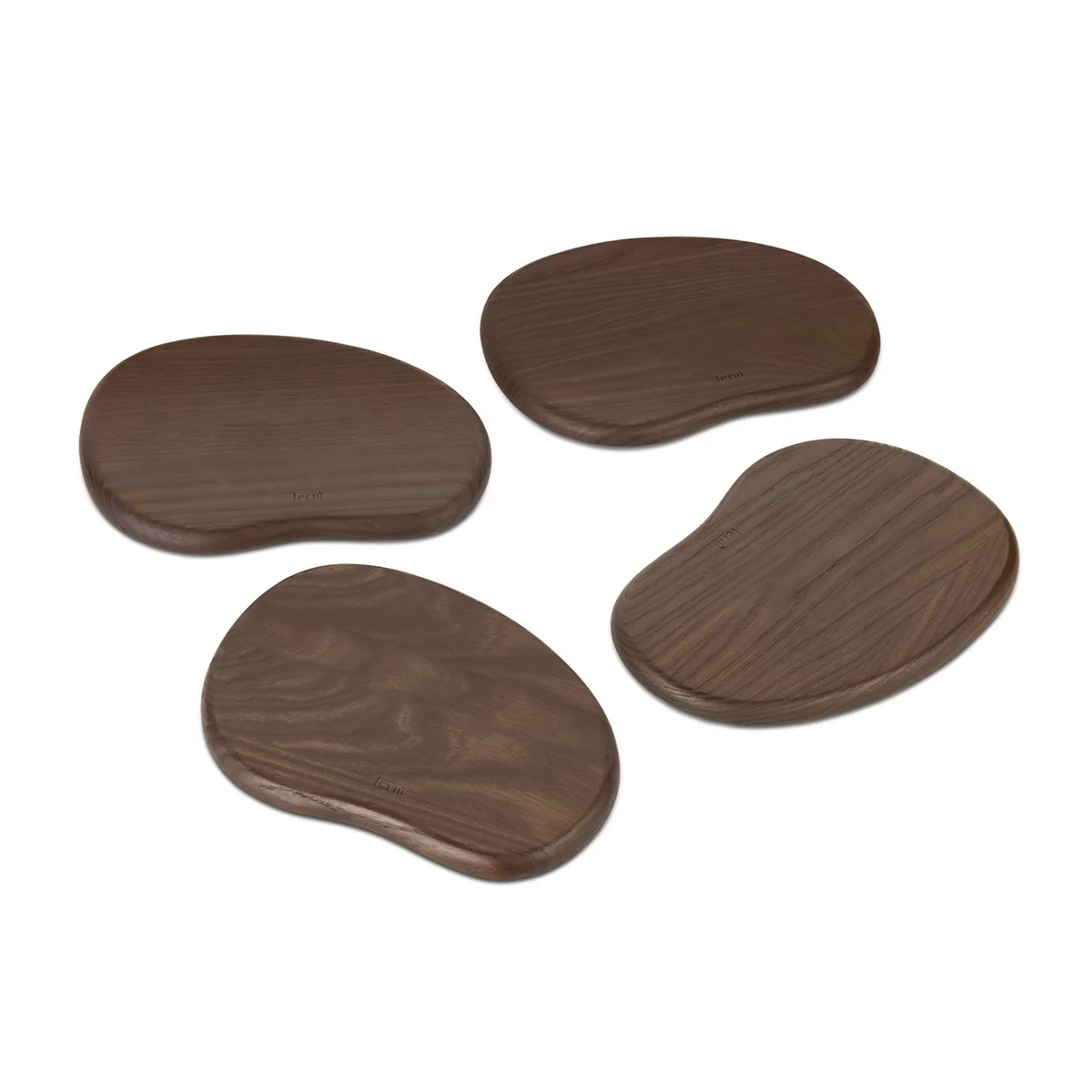 Die Cairn-Butterbretter zeichnen sich durch ihre weichen Kurven und skulpturalen Details aus und verleihen den Mahlzeiten ein künstlerisches Element. Die organischen Holzformen wurden aus massivem, FSC™-zertifiziertem Eschenholz geschnitzt und sind von Steinhaufen inspiriert, die oft zu Gedenkzwecken aufgeschichtet werden. Sie haben zarte, abgerundete Kanten und wurden mit einer Karbonisierung versehen, die ihnen einen besonderen Look verleiht. Verwenden Sie sie als Teller für ein köstliches Frühstück oder Mittagessen oder als dekoratives Element zum Servieren von Speisen am Esstisch. Nicht spülmaschinenfest. Aufgrund des abschließenden Polierens, um die organische Form zu erhalten, können Abweichungen in Größe und Farbe auftreten.