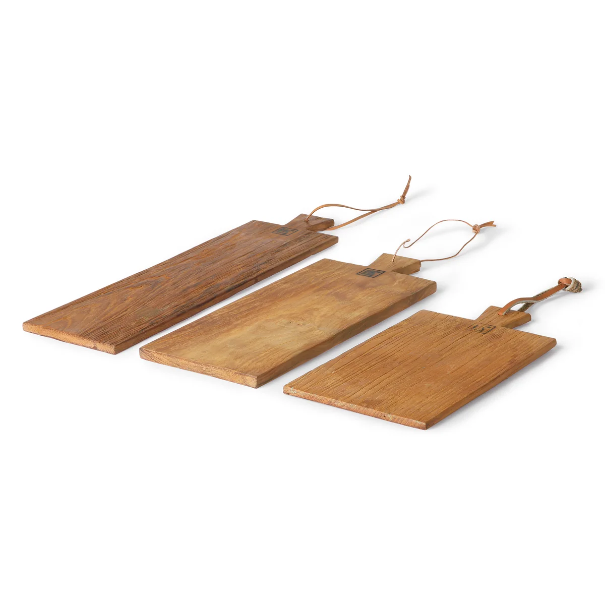 HKliving - Servierbrett (3er-Set), Teak / Leder