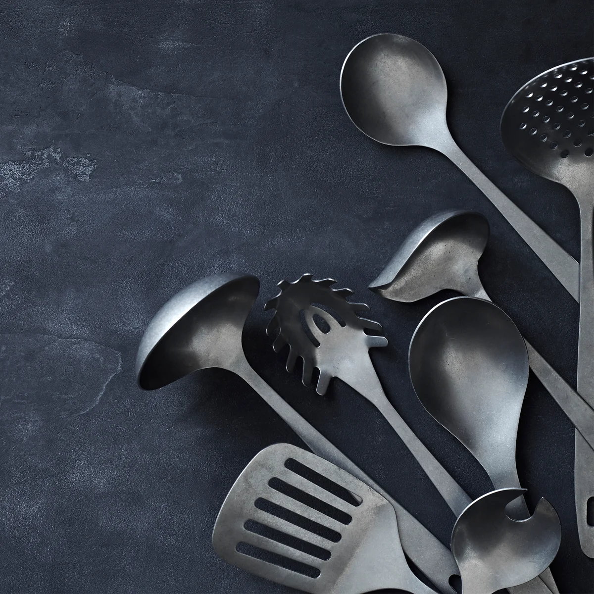 Das Daily Servierbesteck von Nicolas Vahé aus gebürstetem Edelstahl im Industrial-Chic-Style. Daily ist eine Küchenutensilien-Kollektion von Nicolas Vahé, die Design und Funktionalität gekonnt kombiniert. Dank des gebürsteten Edelstahls erhält das Besteck eine maskuline Ausstrahlung, die durch das schlichte, aber trotzdem elegante Design etwas abgeschwächt wird. Diese Kollektion verleiht dem Tischgedeck den letzten Schliff und ist zudem auch noch besonders praktisch. Auch als Deko macht sich Daily gut. Zum Beispiel in einem Utensilienbehälter oder an der Wand.