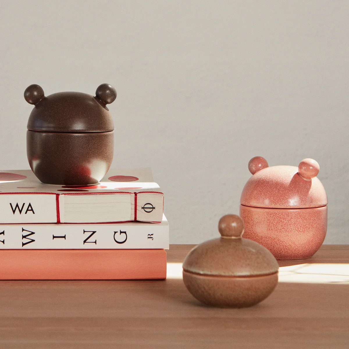 In der Saga Bonbonniere von OYOY lassen sich neben den Lieblingssüßigkeiten auch Schmuck und andere kleine Schätze verstecken. Das Gefäß aus Steingut überzeugt mit fröhlichen Farben und niedlichen Details am Deckel. Es ist zudem lebensmittelecht, sodass auch unverpackte Süßigkeiten in Saga aufbewahrt werden können. Die verschiedenen Varianten können wunderbar kombiniert werden.