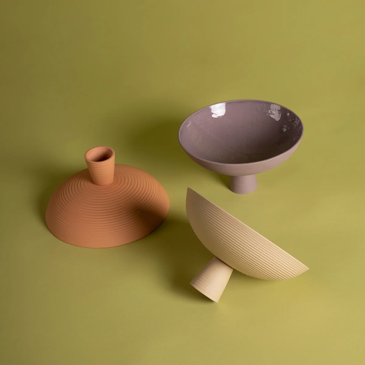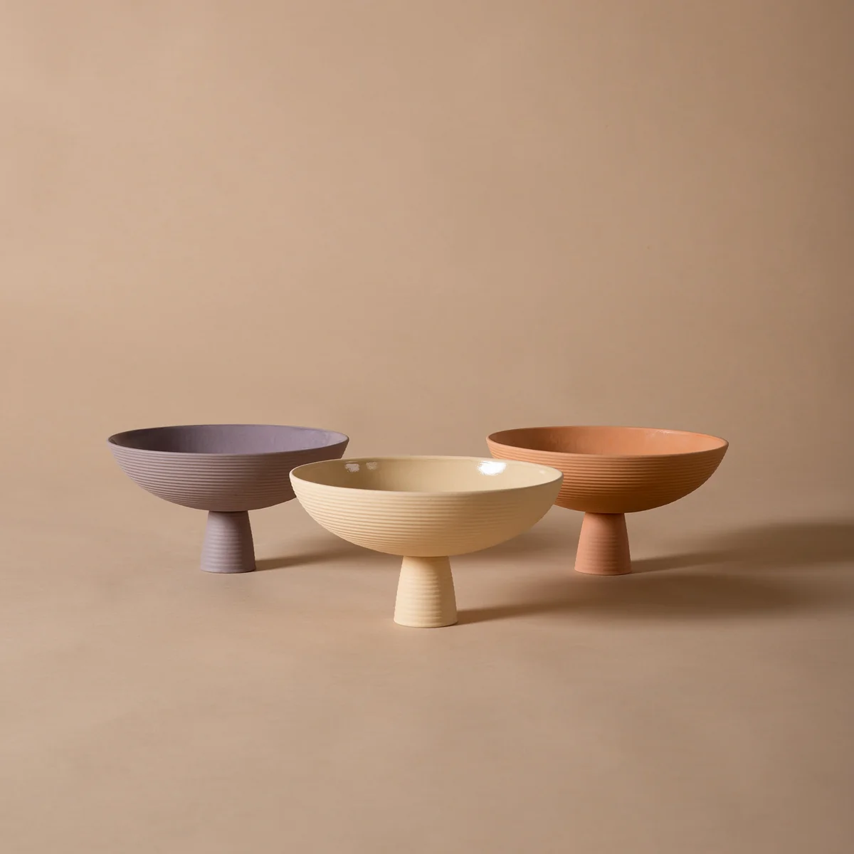 Die Dais Schale von Schneid wurde 2019 von Julia Jessen im Schneid Design-Studio entworfen. Die kurvige Silhouette und rhythmische Struktur der Dais Schale mit Fuß spielen auf die Ästhetik von Topografie und Architektur an. Raffinierte Details und charakteristische Konturen betonen ein poetisches Gefühl für Formen, wodurch die Schale einen ruhigen und ausbalancierten Charakter bekommt.