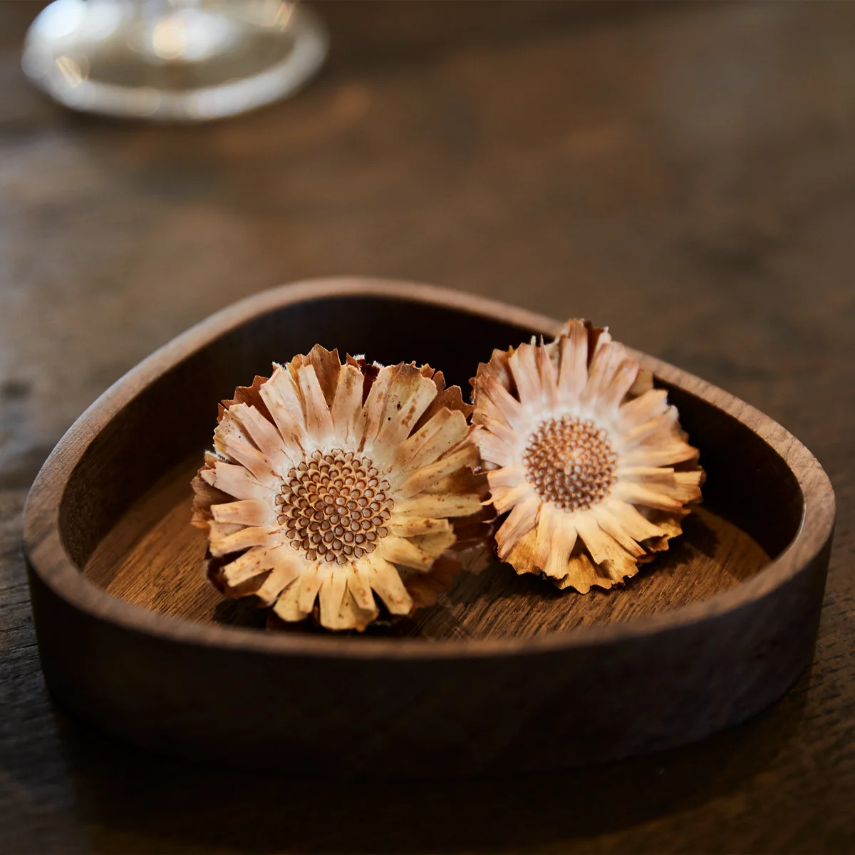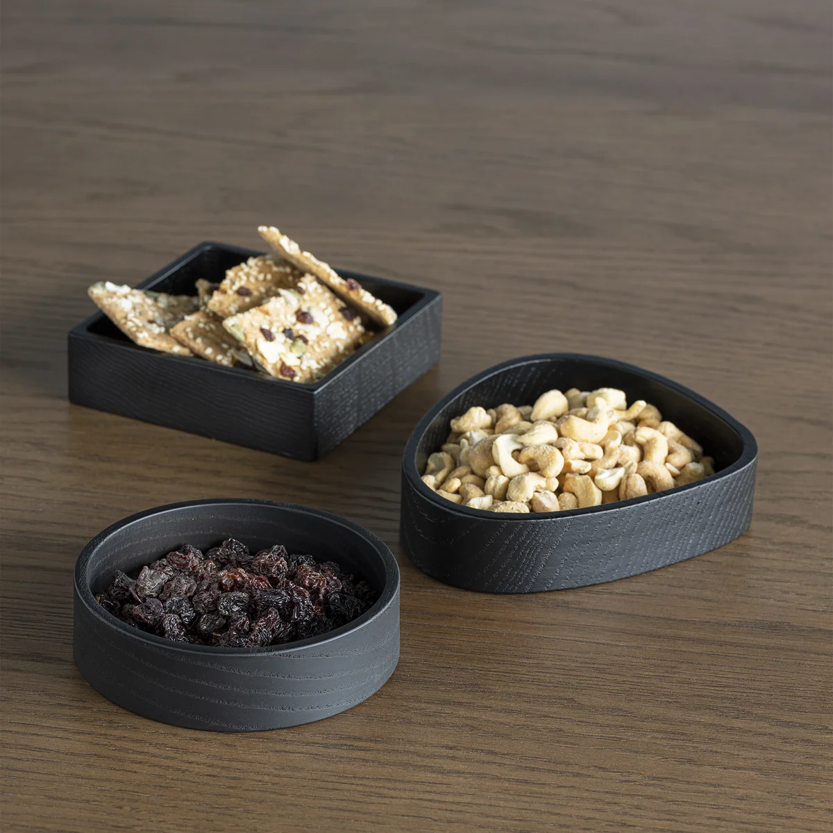 Die Wood Box von Lind DNA ist eine multifunktionale Aufbewahrung für viele kleine Wohnaccessoires. Oder aber eine besondere Servierschale für Lebensmittel und Speisen. Die lebensmittelechten Schalen sind in verschiedenen Formen erhältlich, die sich auf jedem Tisch dekorativ arrangieren lassen. In ihnen können Tapas, Obst, Kekse, Gebäck und vieles mehr stilvoll angerichtet werden. Auch als Schale im Flur für Schlüssel und Brille eignen sich die kleinen Boxen hervorragend.