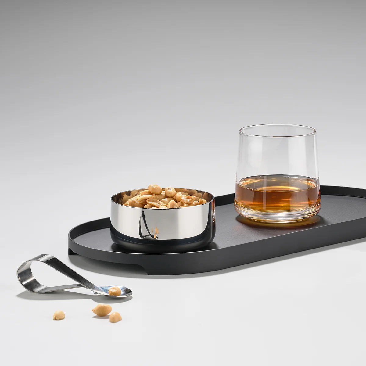 Die Rocks Servierschale mit Löffel von Zone Denmark wurde von dem Designerinnen-Duo Mavro // Lefevre entworfen. Sie ist in zwei Größen erhältlich. Die kleine Schale kann zum Beispiel mit Erdnüssen, Cashewkernen oder Salzmandeln gefüllt und zu einem alkoholischen Getränk gereicht werden. Und dank des hübschen Löffels, der am Schalenrand aufbewahrt werden kann, lassen sich die Snacks auf eine hygienische Weise servieren.