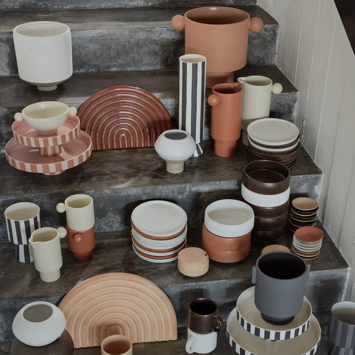 Das Tablett ist handgefertigt und besteht aus Keramik, das anschließend mit Streifen verziert wird. Reinigen lässt Toppu sich mit einem feuchten Tuch.