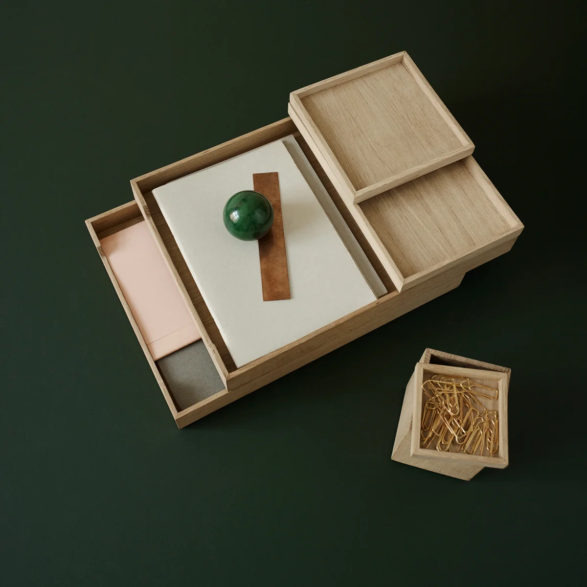 Das Designerteam von VE2 hat für den dänischen Hersteller Skagerak eine hochwertige Schreibtischausstattung aus Eichenholz entworfen. In unterschiedlichen Größen lassen sich die Nomad Trays individuell kombinieren und stapeln - eine elegante Aufbewahrungsmöglichkeit für Scheren, Stifte, Brieföffner und andere Kleinigkeiten.