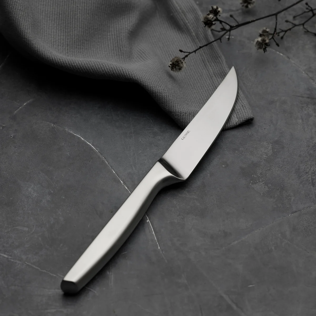 Die Griffe der Steakmesser sind ergonomisch gestaltet und liegen angenehm in der Hand, was eine bequeme Handhabung beim Schneiden ermöglicht. Die schlanke Formgebung des Griffs fügt sich nahtlos in das zeitgemäße und elegante Design der Gense-Produkte ein.