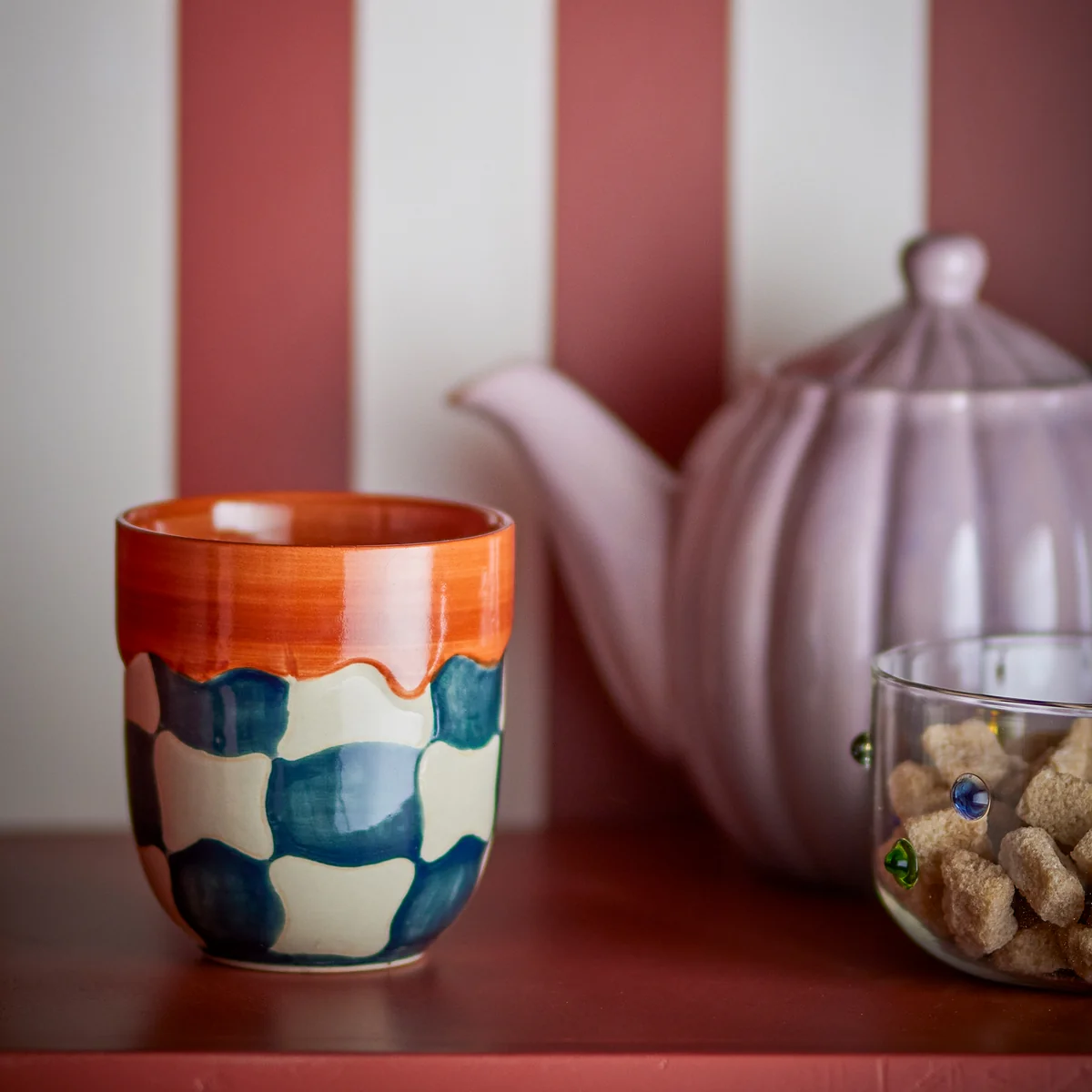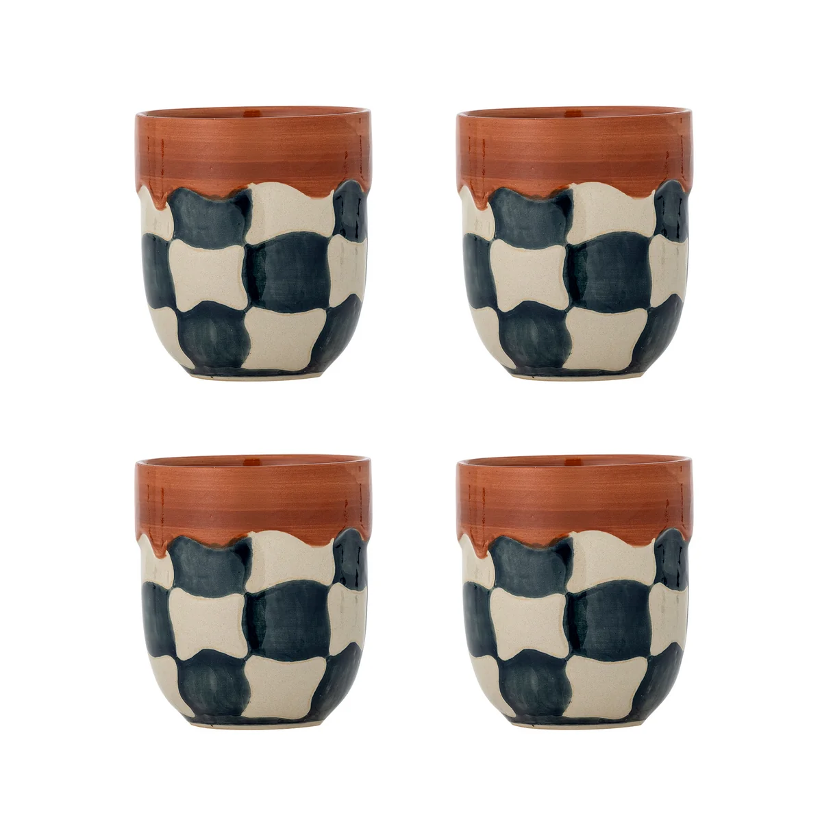 Bloomingville - Check Tasse 375 ml, blau (4er Set)