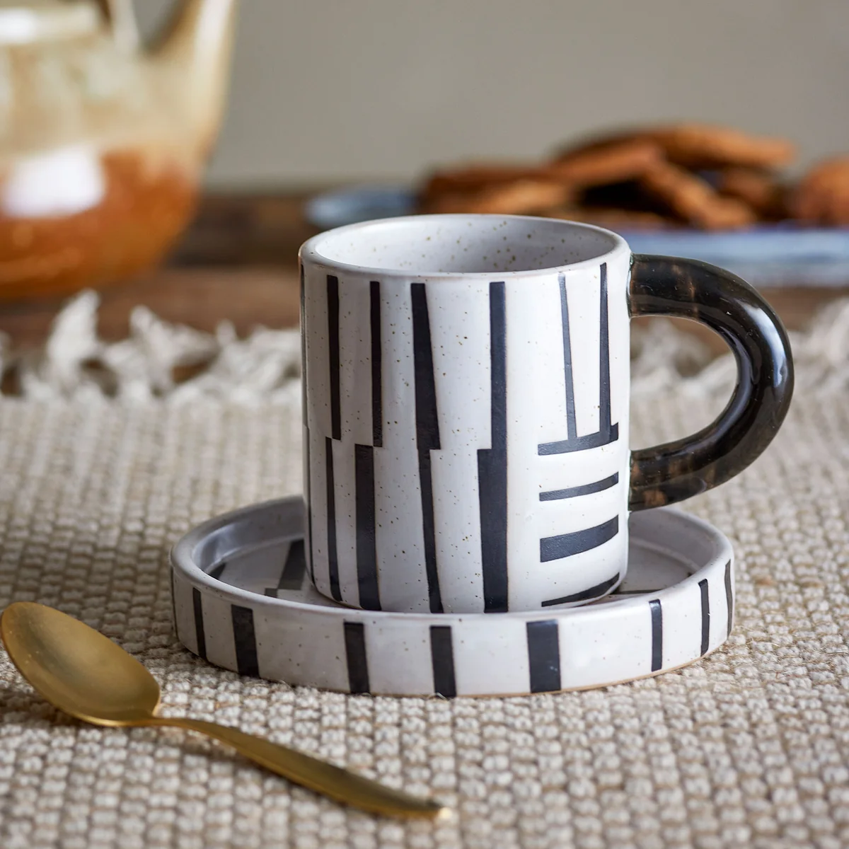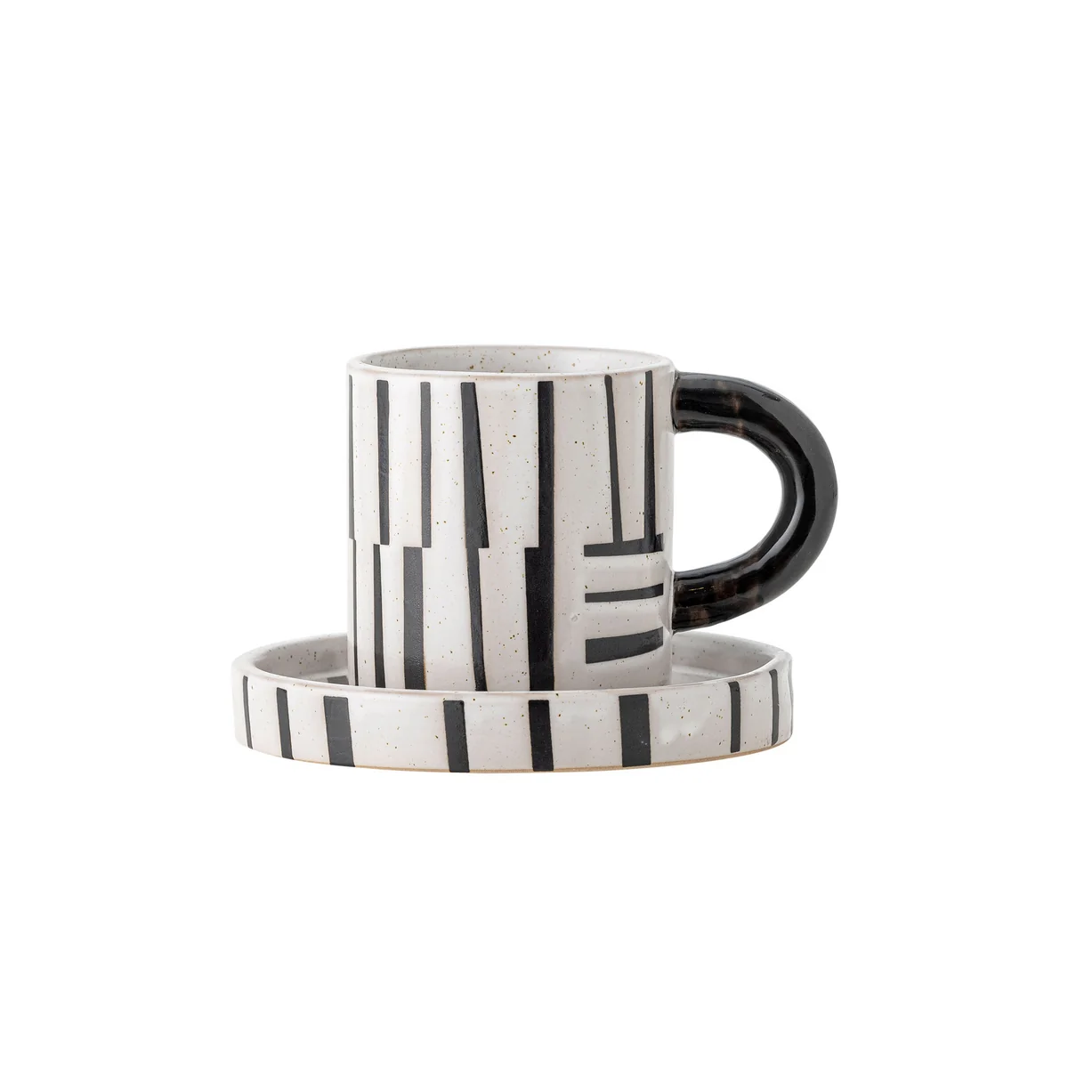 Bloomingville - Frankie Tasse inkl. Untertasse, schwarz / weiß (2-tlg.)