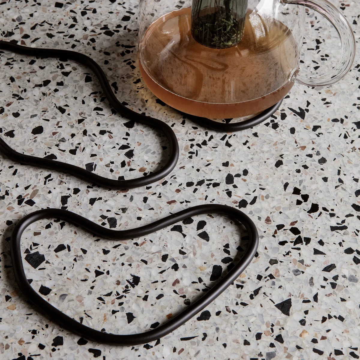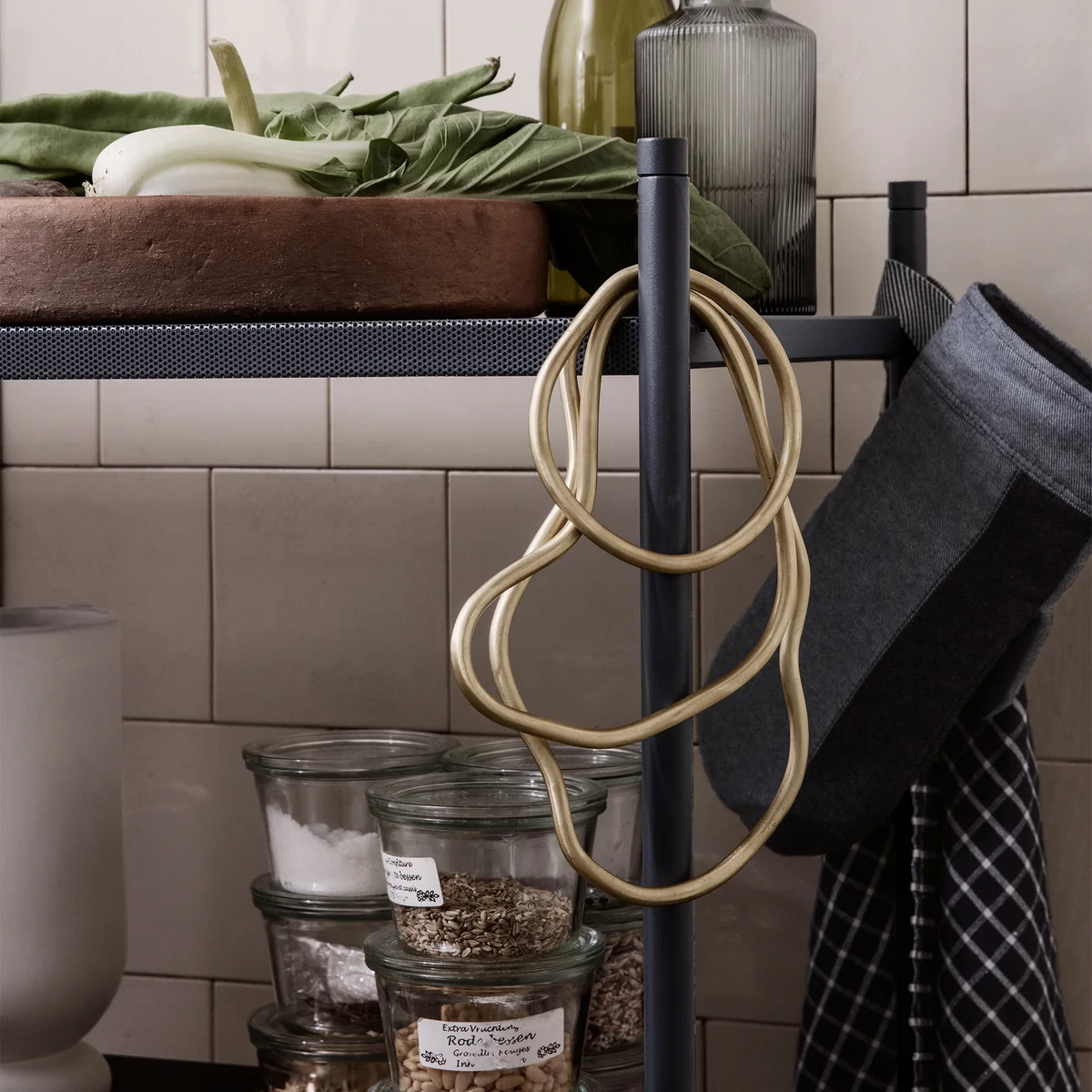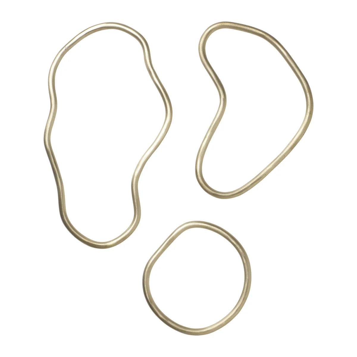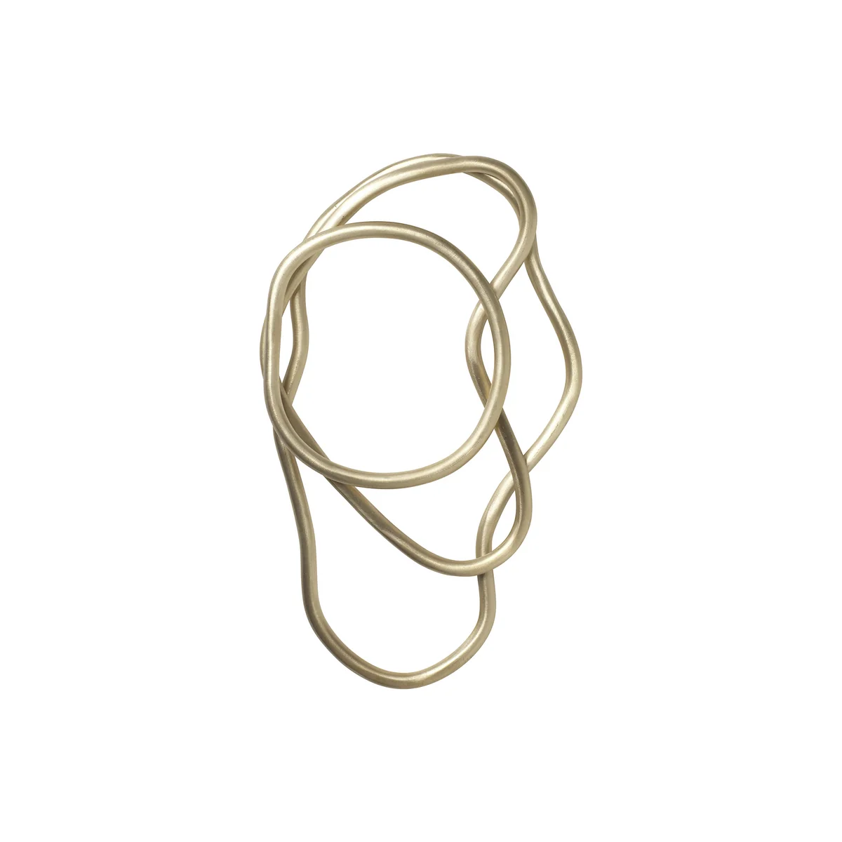 Mit den Pond Untersetzern von Ferm Living ist der Esstisch optimal vor Flecken durch heiße Töpfe und Pfannen geschützt. Das Set aus drei Messingringen ist organisch geformt und erinnert damit an unregelmäßig bewegendes Wasser. Mit ihren geschwungenen Silhouetten passen sich die Ringe nicht nur jeder Topfgröße an, sie setzen zudem auch optische Akzente und sorgen für einen tollen Blickfang auf dem Tisch. Sind die Untersetzer nicht in Gebrauch, so können sie dekorativ an einem Haken in der Küche in Szene gesetzt werden.