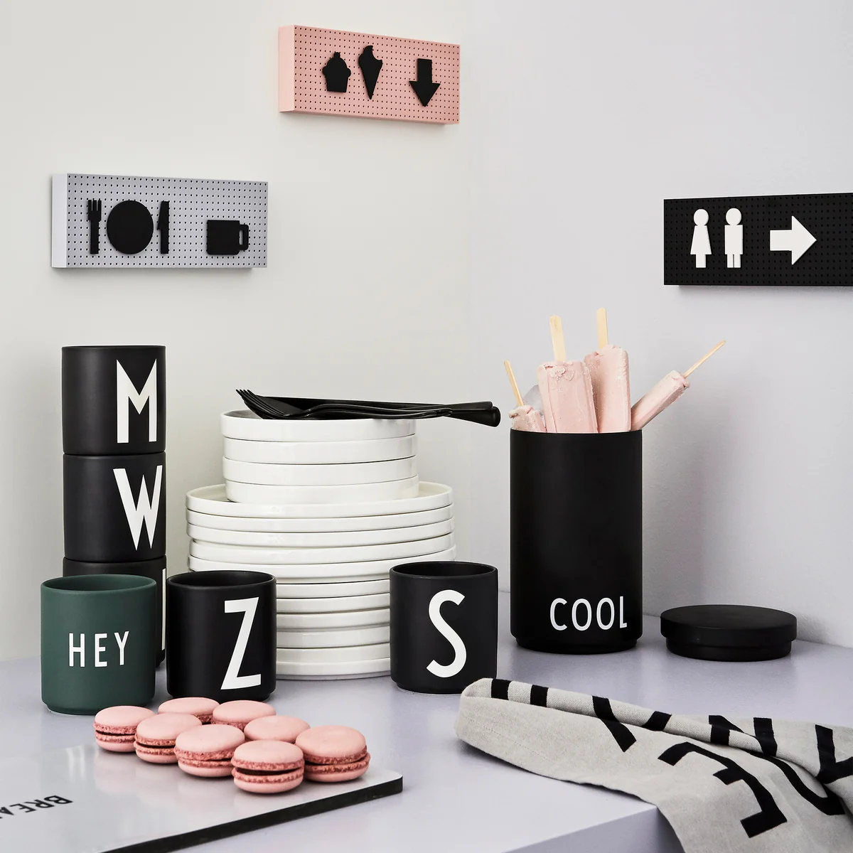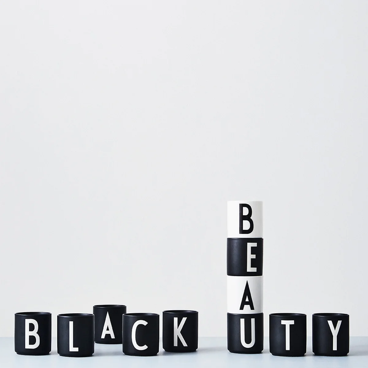 Schreiben Sie mit den Buchstaben-Bechern kleine Botschaften von A bis Z oder setzten Sie moderne Akzente in schwarz und weiß. Mit der Typografie-Serie: den Bechern, Tassen, Tellern und Heimtextilien können unterschiedlichste "Wohngeschichten" geschrieben werden. Egal, ob in der Küche, Bad, Wohn- oder Kinderzimmer.