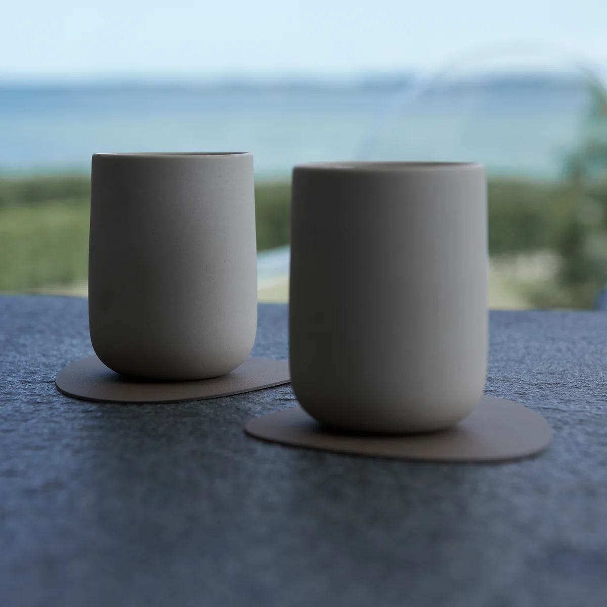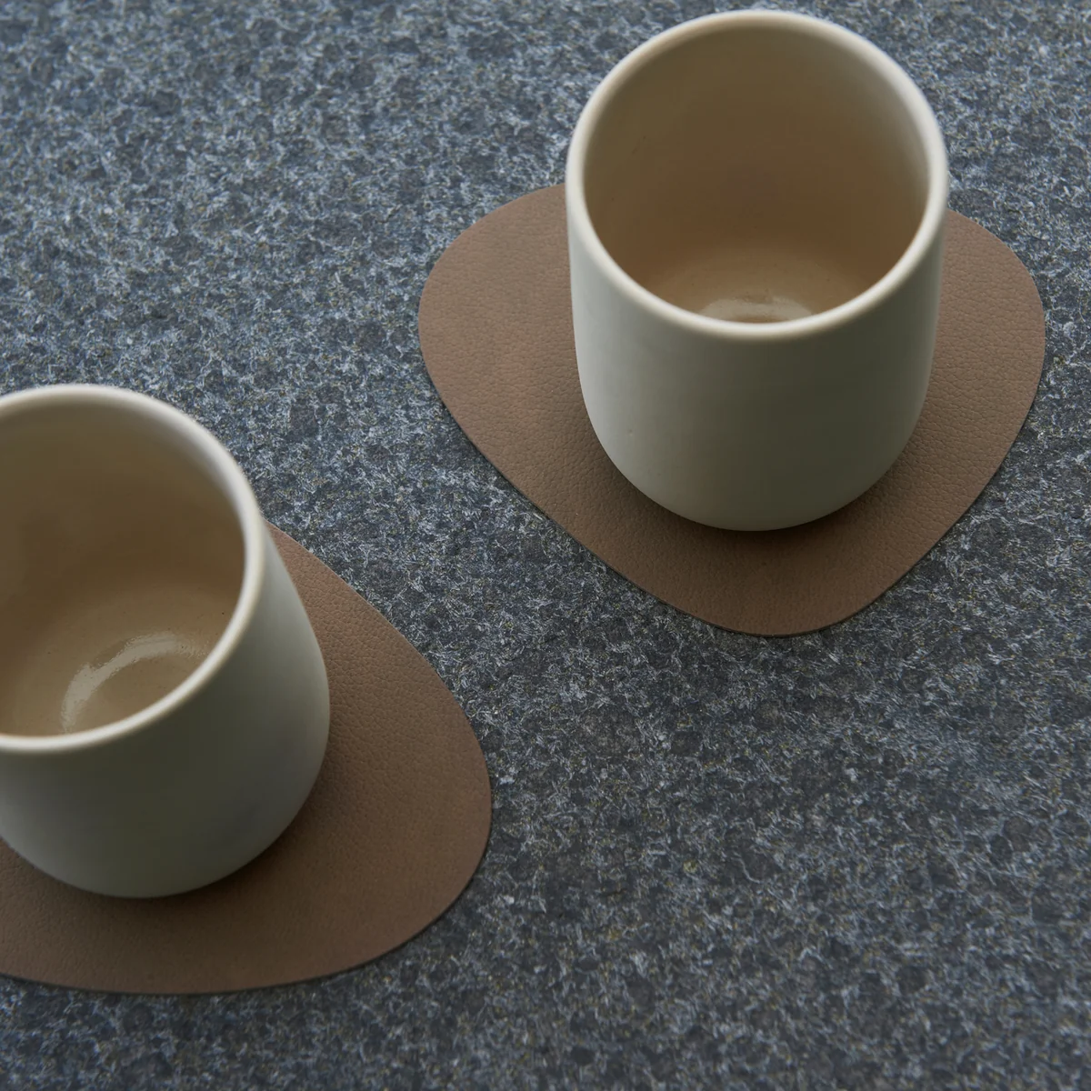 Die Glasuntersetzer Curve von Lind DNA sind in unterschiedlichen Lederoberflächen und Farben erhältlich.