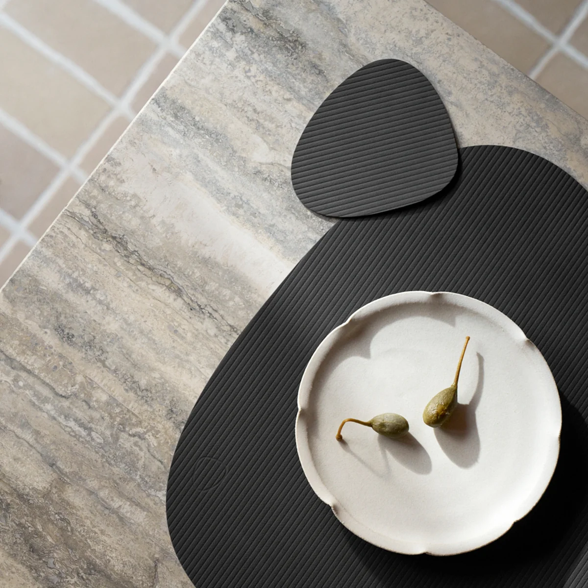 Die "Curve" Form, also die weich abgerundete Dreiecksform, ist bei verschiedenen Designs von Lind DNA zu finden - unter anderem auch als Tisch oder Teppich. Die Kollektion ergänzt sich untereinander optimal, lässt sich aufgrund der unaufdringlichen Form aber auch individuell mit anderen Einrichtungsgegenständen kombinieren. Die Formgebung bringt eine gewisse Dynamik mit sich und wirkt einzigartig gegenüber herkömmlichen quadratischen oder komplett runden Untersetzern.