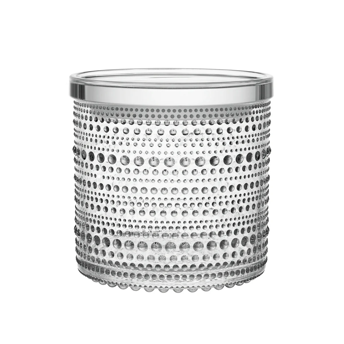 Die Iittala Vorratsgläser in zwei Größen eignen sich zum Aufbewahren verschiedenster Dinge. Luftdicht mit dem Plastikdeckel und Silikonring verschlossen, können in den Gläsern Tee, Süßigkeiten aber auch Schmuck und andere Dinge aufbewahrt werden. In Kombination mit dem Kastehelmi Geschirr können die Gläser auch zum stilvollen Servieren kleinerer Snacks gereicht werden, die im Anschluss ganz einfach abgedeckt und verstaut werden können.