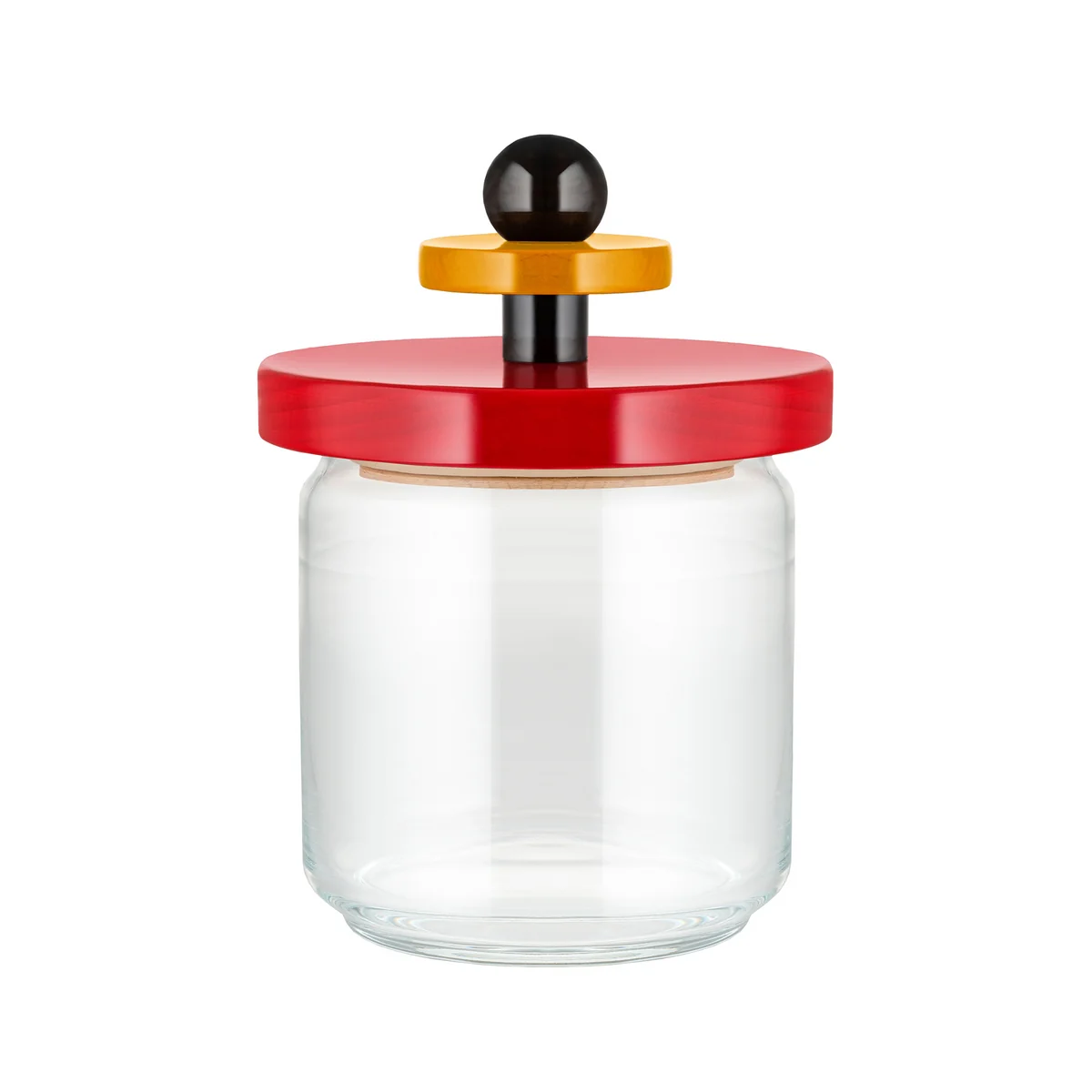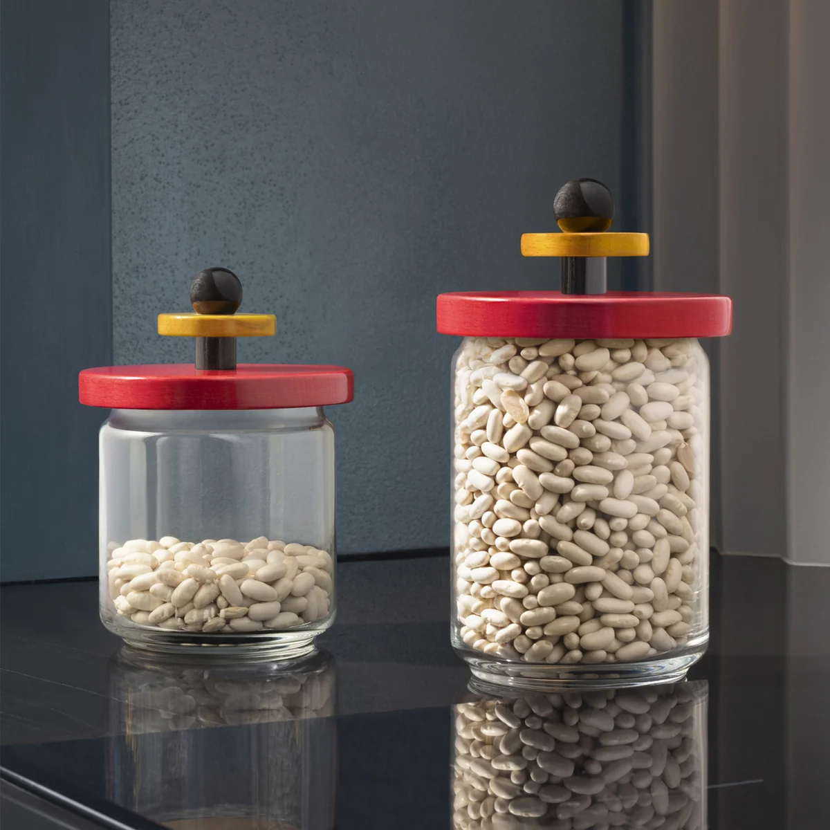 Wer auf der Suche nach einer besonderen Dose ist, trifft mit der Twergi Vorratsdose von Alessi die richtige Wahl. Bunt und für den Designer Ettore Sottsass typisch skulptural geformt, besticht die Vorratsdose durch einen außergewöhnlichen Look, der zum Highlight in jeder Küche wird. Das Gefäß aus Glas und der abgedichtete Deckel aus lebensmittelechtem Lindenholz, machen Twergi zu einer idealen und besonderen Vorratsdose. Müsli, Nudeln, Reis und viele weitere Lebensmittel können in den Vorratsdosen von Alessi stilvoll und sicher aufbewahrt werden, sodass sie länger frisch bleiben. Durch das transparente Glas behält man zudem die Übersicht über seine Vorräte.
