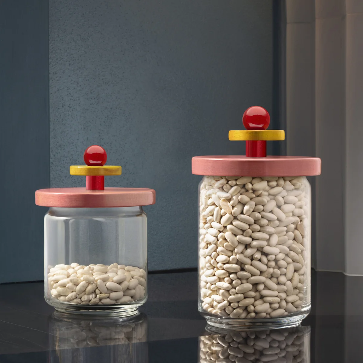 Die Twergi Vorratsdose von Alessi wird in Italien aus Glas und FSC-zertifiziertem Lindenholz gefertigt und ist in verschiedenen Größen und Farbvarianten erhältlich. Die Dosen können je nach Bedarf und Geschmack in den verschiedenen Größen und Farben miteinander kombiniert, oder einzeln verwendet werden.