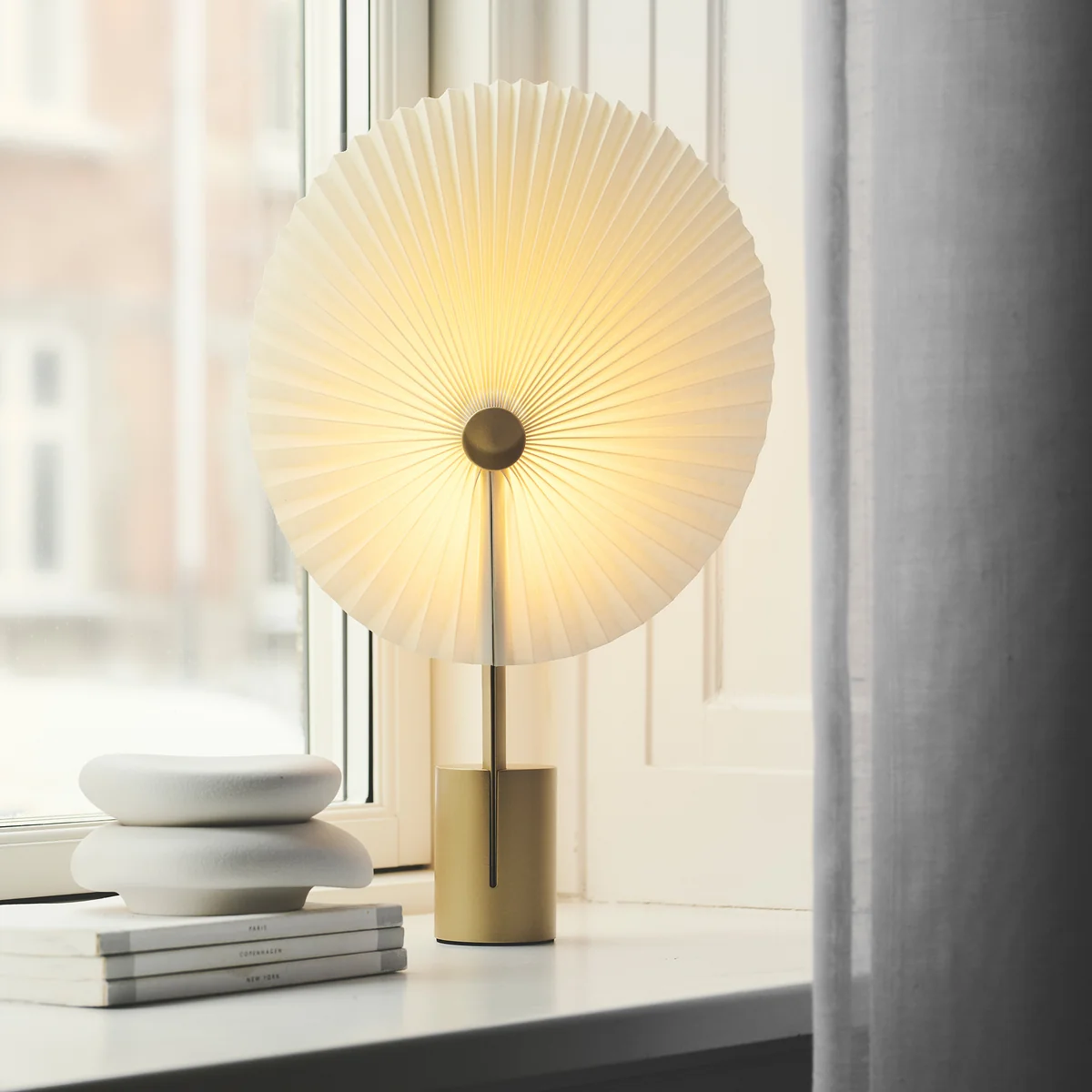 Die Liris-Kollektion, entwickelt vom Design-Duo Thalea Schmalenberg und Kasper Fris Egelund, vereint intensives Design und handwerkliches Können und basiert auf der Anmut und Einfachheit eines traditionellen Papierfächers. Die Inspiration des Fächers verleiht der Kollektion eine handwerkliche, poetische Note, während moderne Technik, wie die kleine, erhöhte LED-Lichtquelle, für eine weiche, gleichmäßige Lichtverteilung sorgt.