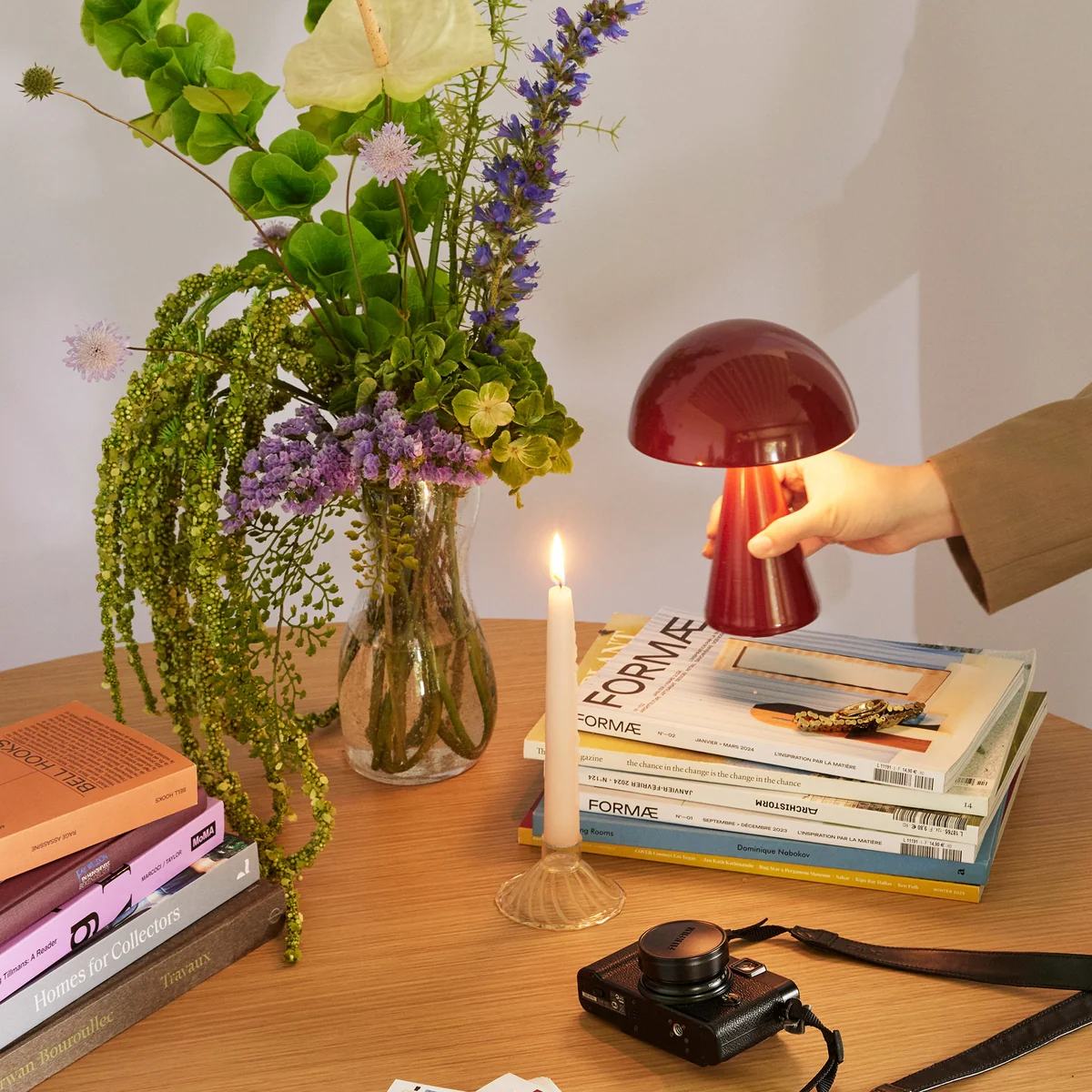 Die Mush Akku-Tischleuchte von Hübsch Interior vereint ikonisches Design mit moderner Flexibilität. Kabellos und wiederaufladbar bringt sie skandinavische Schlichtheit in jeden Raum – ob Wohnzimmer, Nachttisch oder Terrasse. Mit ihrem warmen Licht und der eleganten Nickeloberfläche schafft sie eine Atmosphäre von Ruhe und Stil.