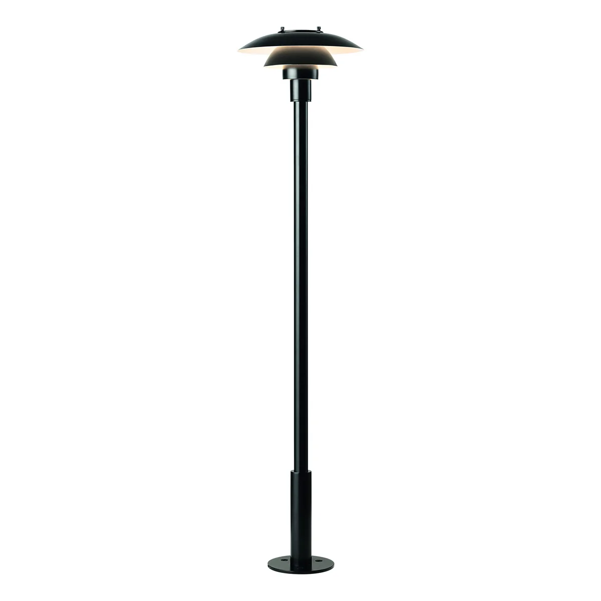 Die PH 3-2½ Pollerleuchte von Louis Poulsen, entworfen von Poul Henningsen, basiert auf dem ikonischen Dreischirmsystem, das Henningsen bereits 1925/26 entwickelte. Ursprünglich für die Pariser Ausstellung entworfen, entstand daraus eine umfangreiche Serie von Leuchten, die blendfreies Licht mit einer gezielten Lichtlenkung kombinieren. Sein Ziel war es, ein Leuchtensystem zu schaffen, das eine gleichmäßige Lichtverteilung gewährleistet und für angenehme, weiche Schatten sorgt.
