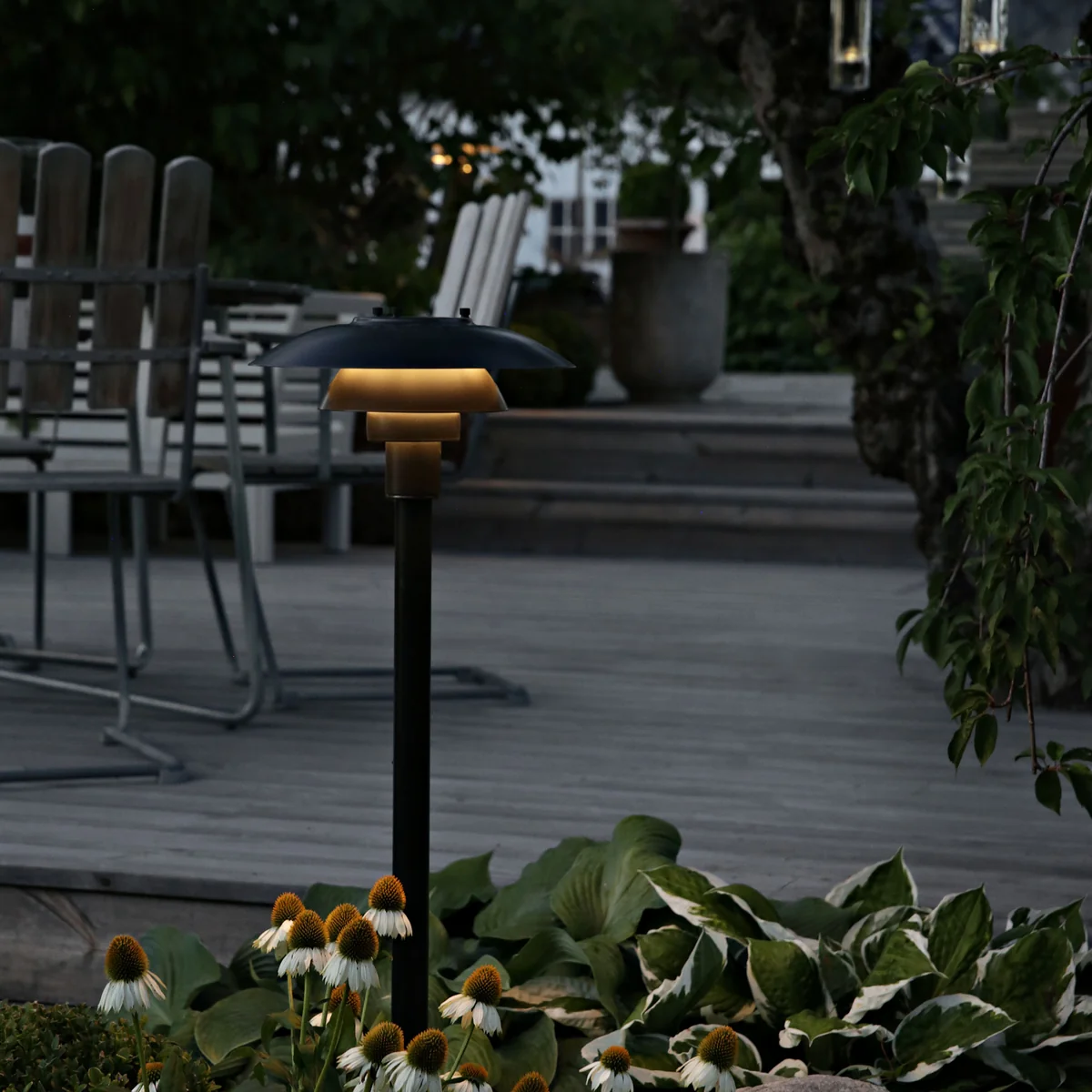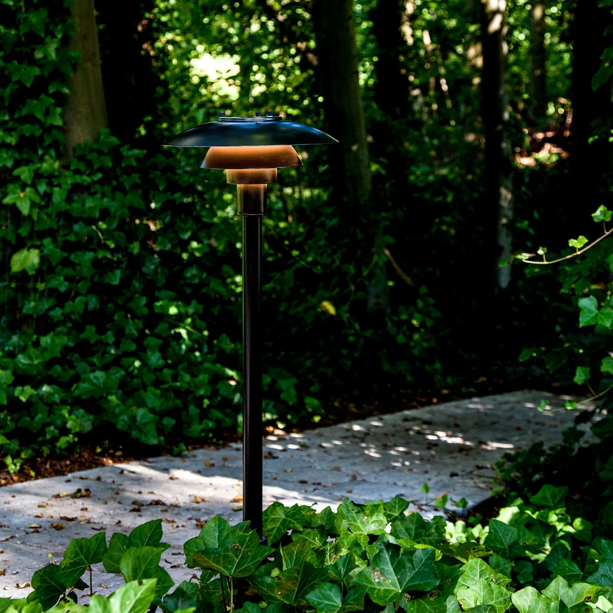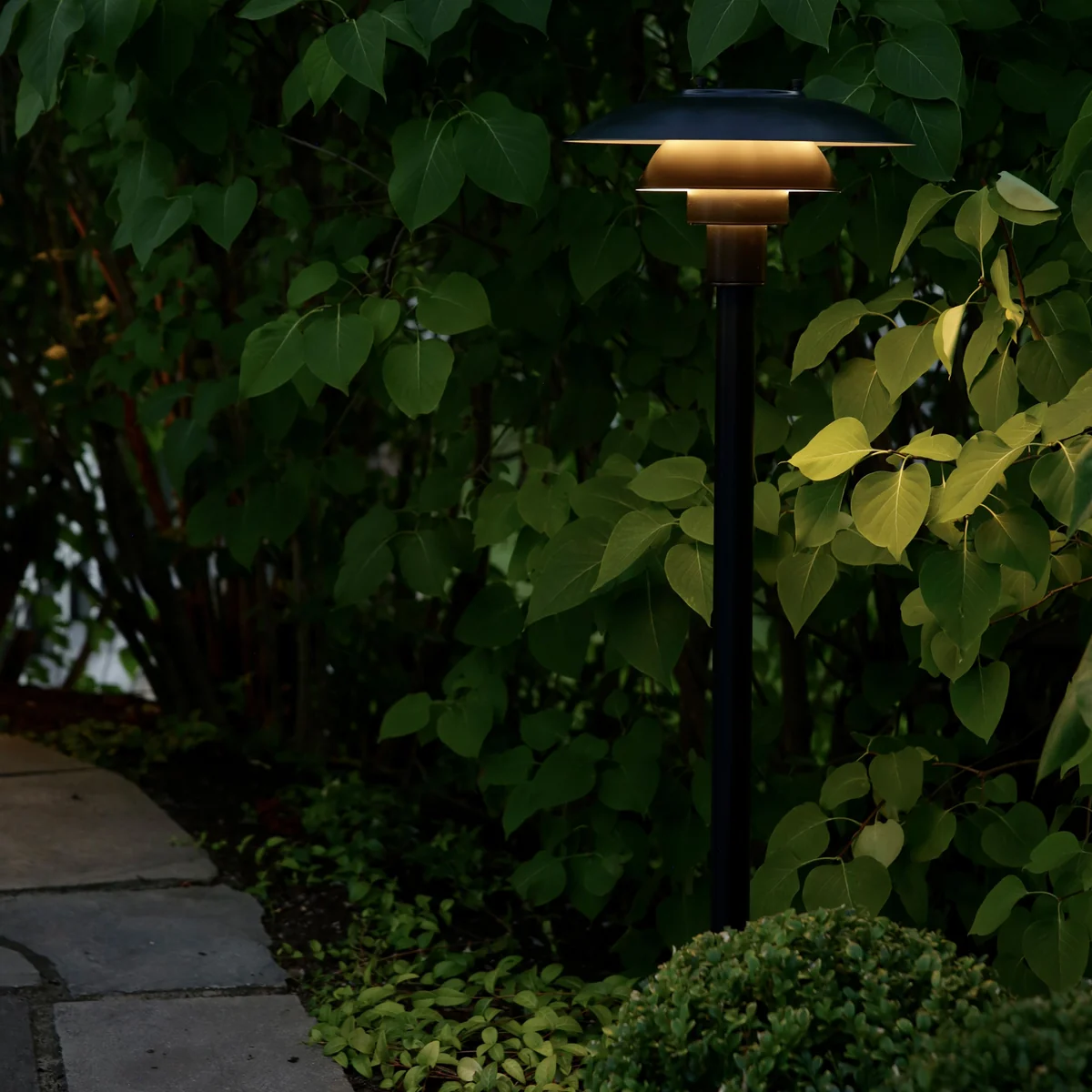 Pollerleuchte im ikonischen Dreischirmsystem von Poul Henningsen