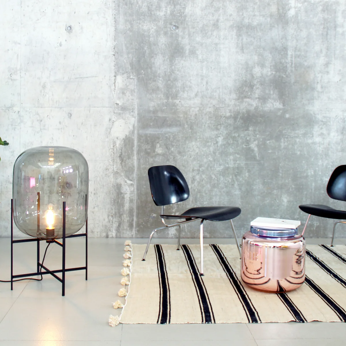 Ein mundgeblasenes, getöntes Glasgefäß balanciert bei der Pulpo Oda auf einem schlichten und eleganten Metallgestell. Der eigenständige Stil sorgt dafür, dass die Oda Leuchte sich als Solitär empfiehlt und auch in großen Räumen dekorativ zur Geltung kommt. Gestaltet wurde die Leuchte von Designer Sebastian Herkner in drei Größen und ist damit vom Schreibtisch bis zum Wohnzimmer vielseitig einsetzbar. Mit dem 4 Meter langem Kabel ist die Leuchte besonders flexibel und kann ganz nach Belieben platziert werden.